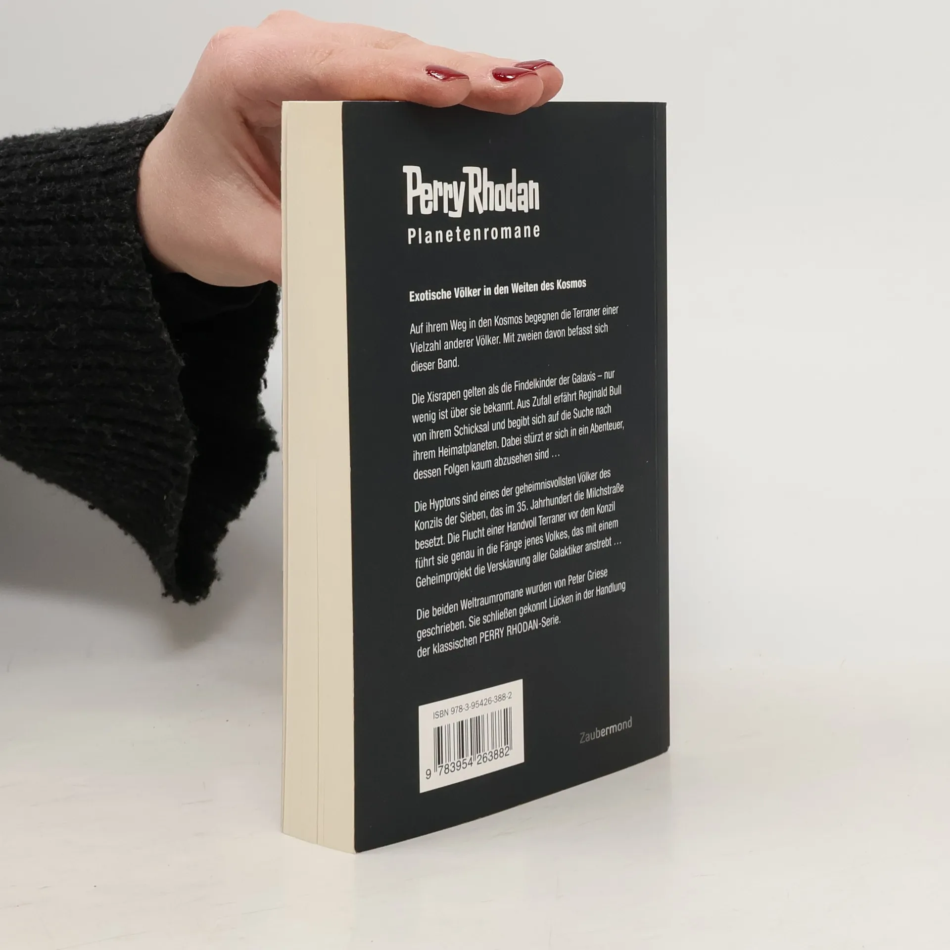 Auf ihrem Weg in den Kosmos begegnen die Terraner einer Vielzahl anderer Völker. Mit zweien davon befasst sich dieser Band. Die Xisrapen gelten als die Findelkinder der Galaxis - nur wenig ist über sie bekannt. Aus Zufall erfährt Reginald Bull von ihrem Schicksal und begibt sich auf die Suche nach ihrem Heimatplaneten. Dabei stürzt er sich in ein Abenteuer, dessen Folgen kaum abzusehen sind ... Die Hyptons sind eines der geheimnisvollsten Völker des Konzils der Sieben, das im 35. Jahrhundert die Milchstraße besetzt. Die Flucht einer Handvoll Terraner vor dem Konzil führt sie genau in die Fänge jenes Volkes, das mit einem Geheimprojekt die Versklavung aller Galaktiker anstrebt ... Die beiden Weltraumromane wurden von Peter Griese geschrieben. Sie schließen gekonnt Lücken in der Handlung der klassischen PERRY RHODAN-Serie.