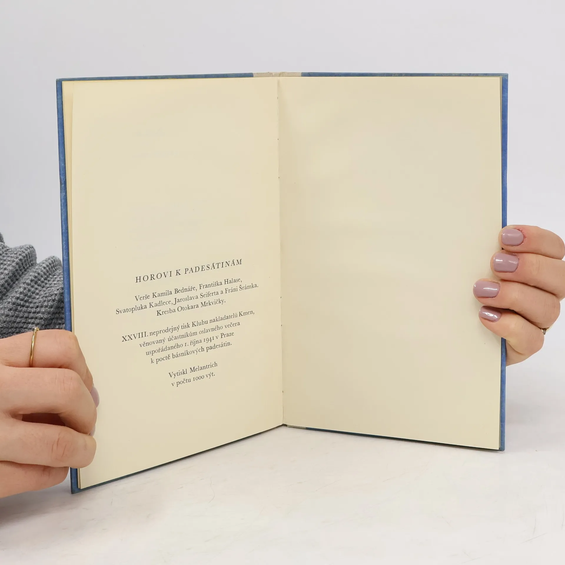 Dík a pozdrav. Josefu Horovi k padesátinám, Kamil Bednář, František Halas, Svatopluk Kadlec, Jaroslav Seifert, Fráňa Šrámek, Otakar Mrkvička