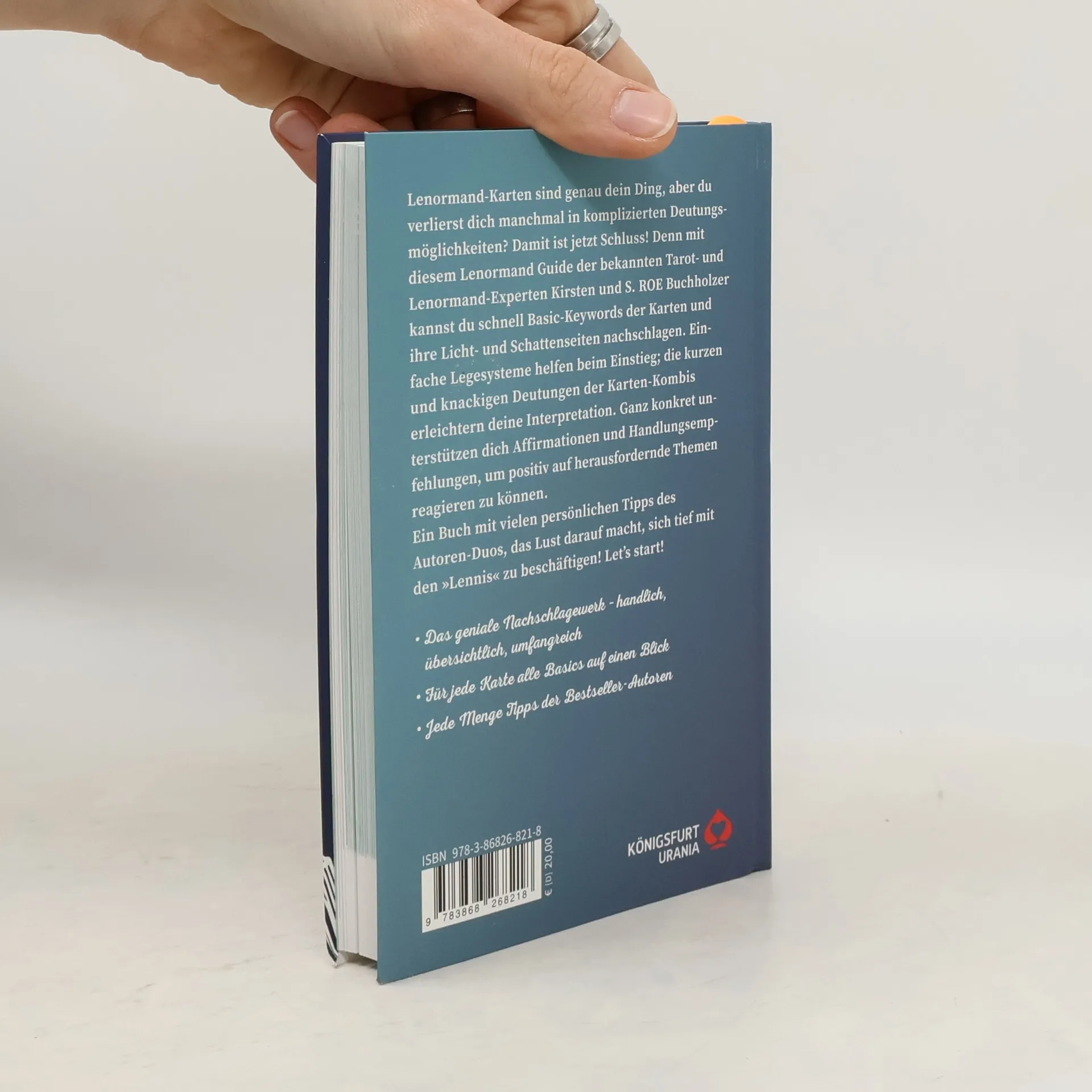 Lenormand-Karten sind genau dein Ding, aber du verlierst dich manchmal in komplizierten Deutungsmöglichkeiten? Damit ist jetzt Schluss! Denn mit diesem Lenormand Guide der bekannten Tarot- und Lenormand-Experten Kirsten und S. ROE Buchholzer kannst du schnell Basic-Keywords der Karten und ihre Licht- und Schattenseiten nachschlagen. Einfache Legesysteme helfen beim Einstieg; die kurzen und knackigen Interpretationen der Karten- Kombis erleichtern deine Interpretation. Ganz konkret unterstützen dich Affirmationen und Handlungsempfehlungen, um positiv auf herausfordernde Themen reagieren zu können. Ein Buch mit vielen persönlichen Tipps des Autoren-Duos, das Lust darauf macht, sich tief mit den „Lennis“ zu beschäftigen! Let’s start! - Flexcover, durchgehend farbig mit 2 Lesebändchen -