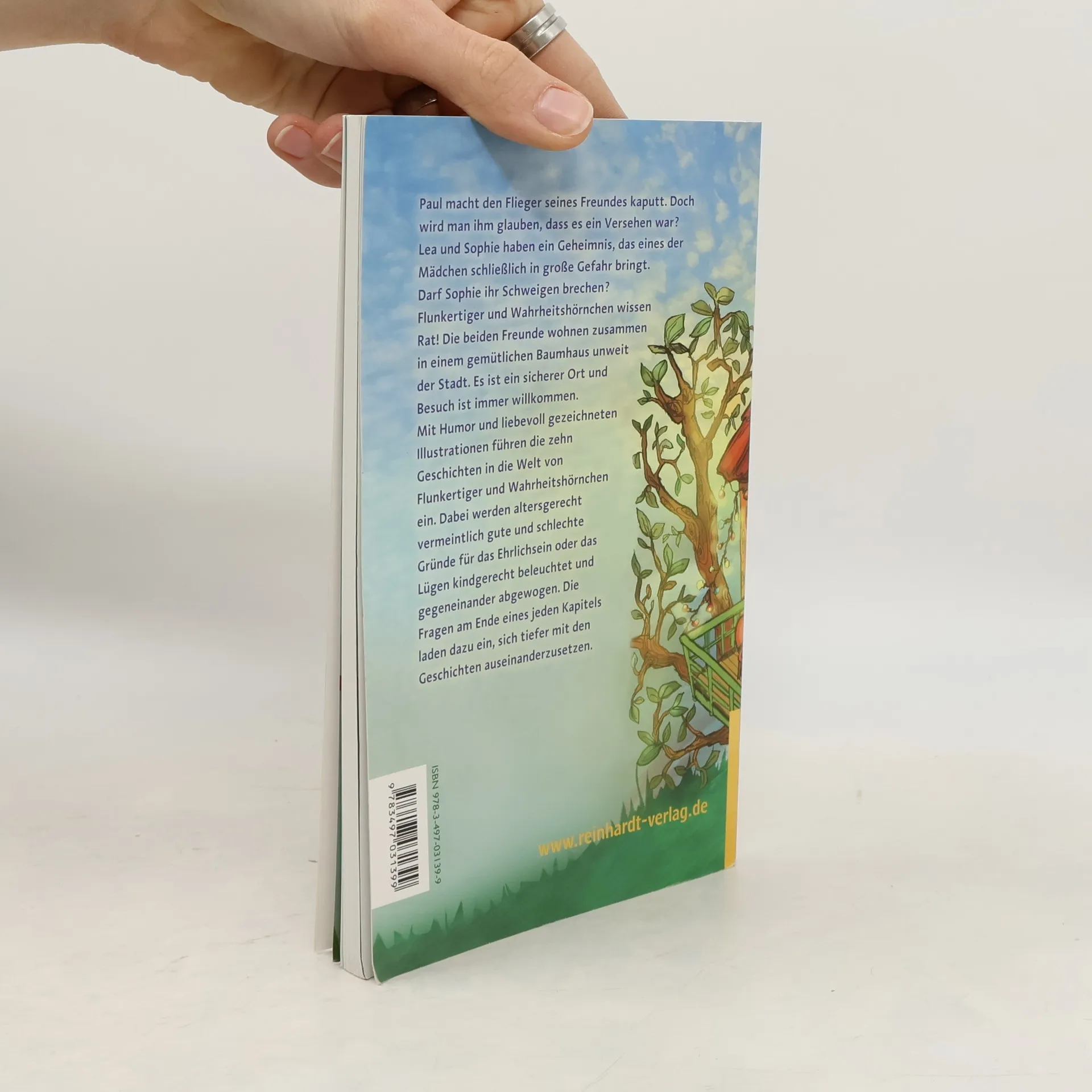 Paul macht den Flieger seines Freundes kaputt. Doch wird man ihm glauben, dass es ein Versehen war? Lea und Sophie haben ein Geheimnis, das eines der Mädchen schließlich in große Gefahr bringt. Darf Sophie ihr Schweigen brechen? Flunkertiger und Wahrheitshörnchen wissen Rat! Die beiden Freunde wohnen zusammen in einem gemütlichen Baumhaus unweit der Stadt. Es ist ein sicherer Ort und Besuch ist immer willkommen. Mit Humor und liebevoll gezeichneten Illustrationen führen die zehn Geschichten in die Welt von Flunkertiger und Wahrheitshörnchen ein. Dabei werden altersgerecht vermeintlich gute und schlechte Gründe für das Ehrlichsein oder das Lügen beleuchtet und gegeneinander abgewogen. Die Fragen am Ende eines jeden Kapitels laden dazu ein, sich tiefer mit den Geschichten auseinanderzusetzen.