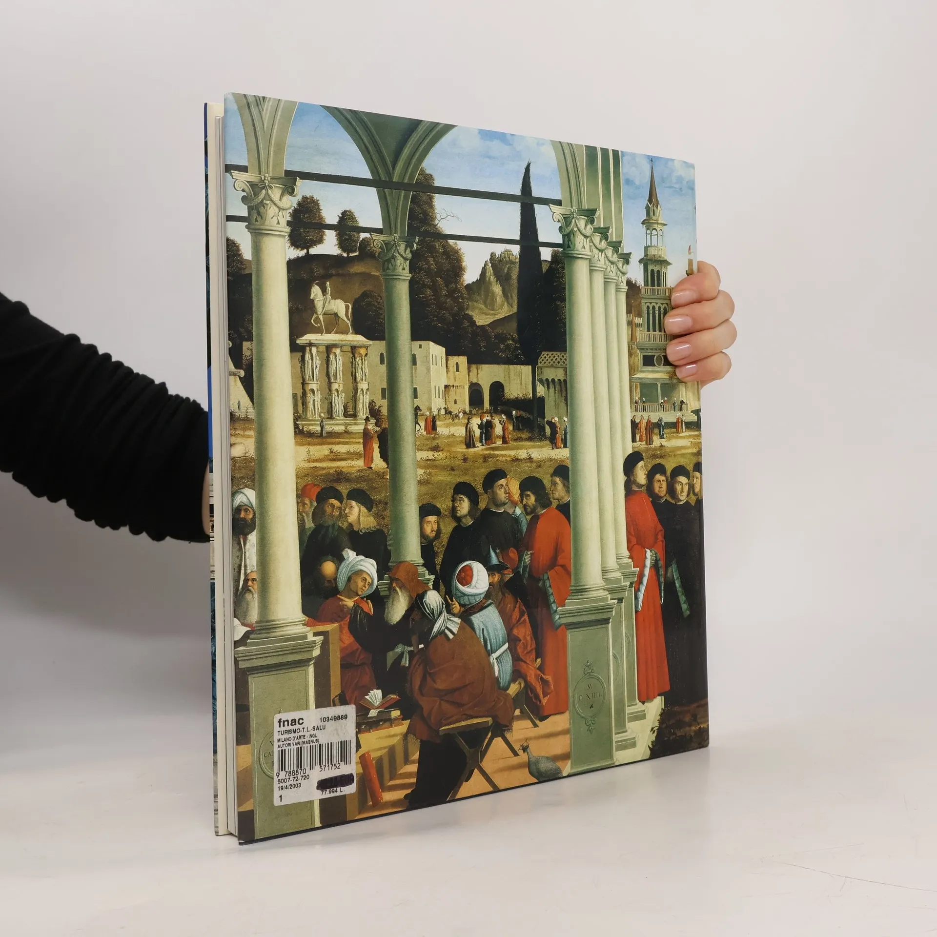this large hardcover book has pictures on almost every page of art objects in milan,it is a very pretty book