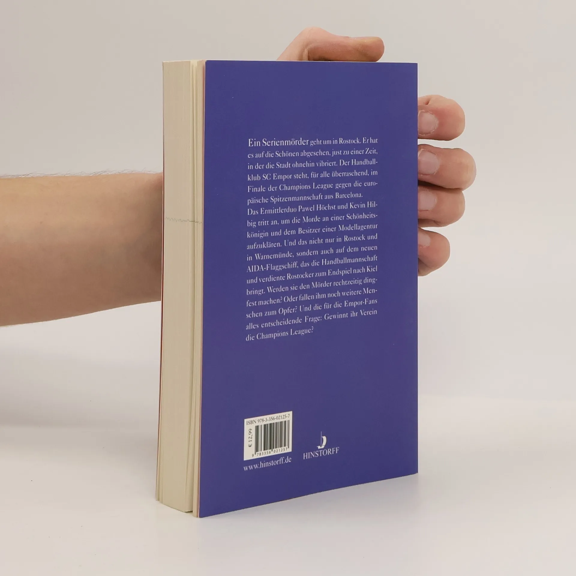 Ein Fall für die Champions League: Ein Serienmörder geht um in Rostock. Er hat es auf die Schönen abgesehen, just zu einer Zeit, in der die Stadt ohnehin vibriert. Der Handballklub SC Empor steht, für alle überraschend, im Finale der Champions League gegen die europäische Spitzen- mannschaft aus Barcelona. Privatdetektiv Pawel Höchst und sein Co-Ermittler Kevin Hilbig, der mittlerweile bei der Polizei der Hansestadt arbeitet, treten an, um die Morde an einer Schönheitskönigin und dem Besitzer einer Modellagentur aufzuklären. Und das nicht nur in Rostock und in Warnemünde, sondern auch auf dem neuen AIDA-Flaggschiff, das die Handballmannschaft und verdiente Rostocker zum Endspiel nach Kiel bringt. Werden sie den Mörder rechtzeitig dingfest machen? Oder fallen ihm noch weitere Menschen zum Opfer? Und die für die Empor-Fans alles entscheidende Frage: Gewinnt ihr Verein die Champions League?