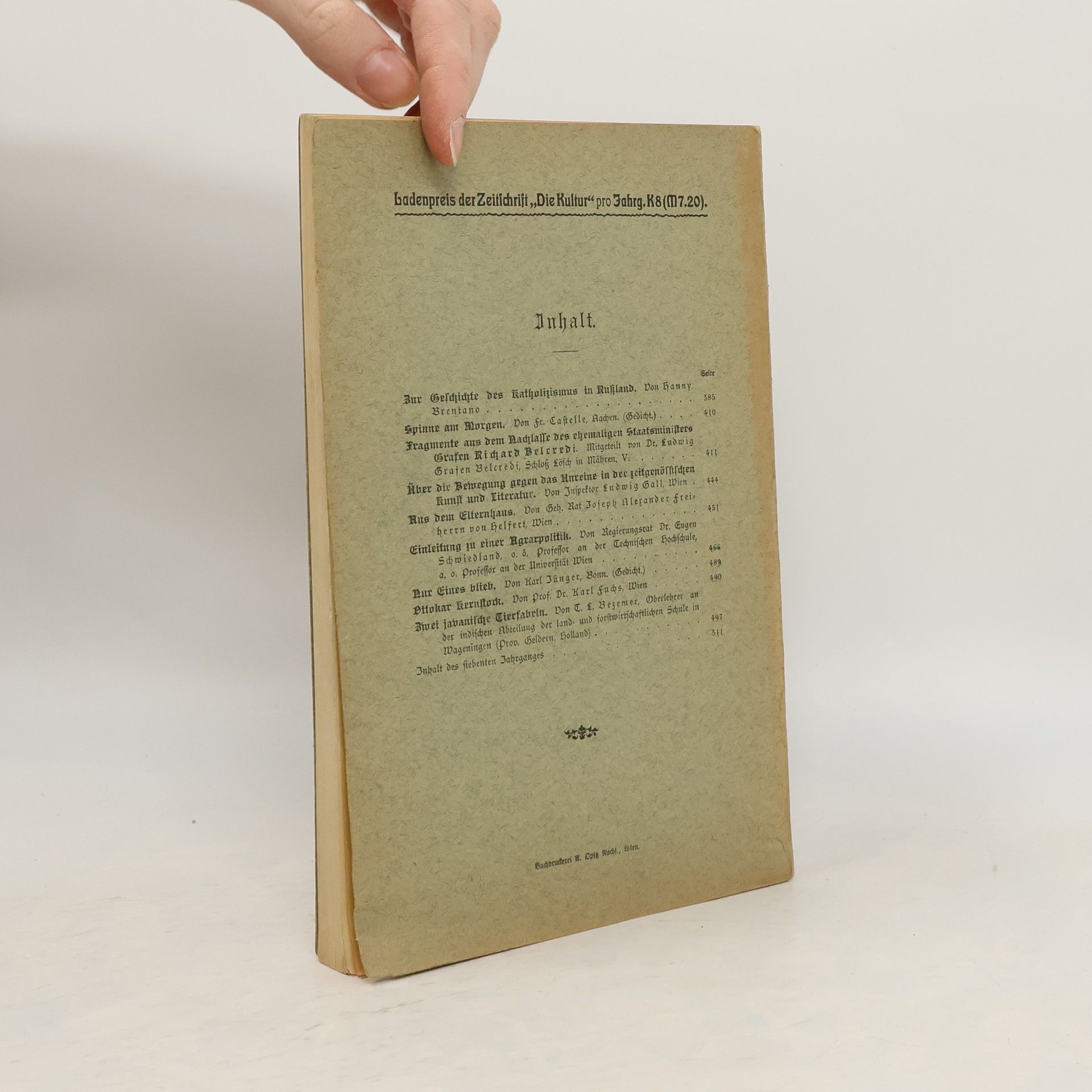Die Kultur 7. Jahrg. 4. Heft, Autorenkollektiv