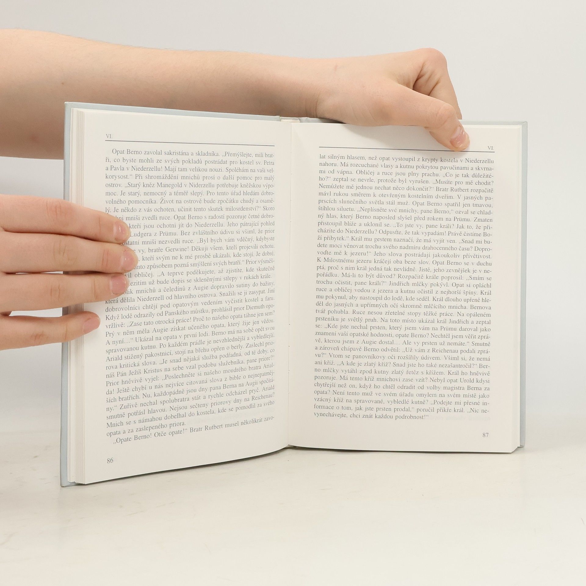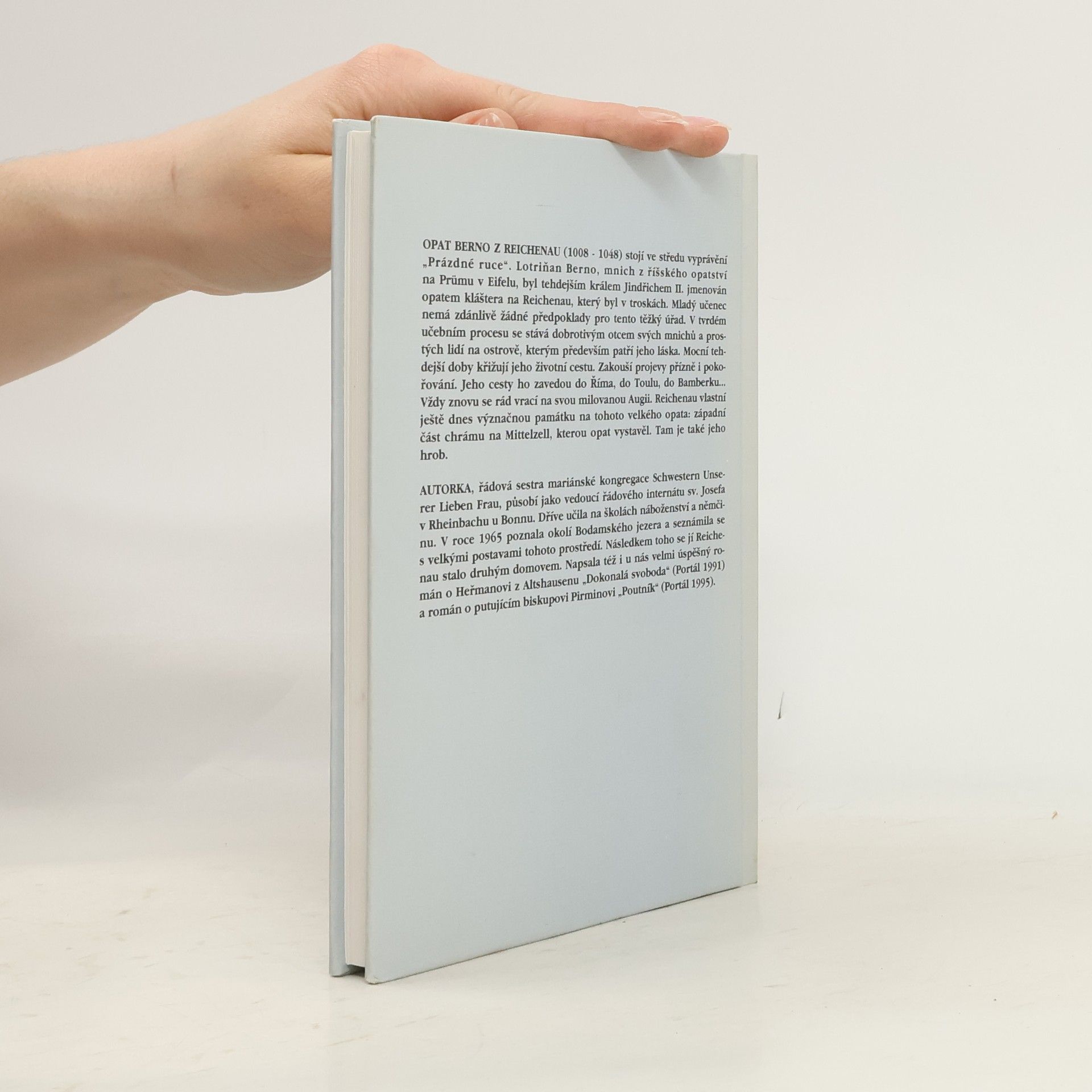 Hlavním hrdinou tohoto románu je opat Berno z Reichenau (1008 - 1048). Berno, mnich říšského opatství na Prümu v Eifelu, byl tehdejším králem Jindřichem II. jmenován opatem kláštera v Reichenau, který byl v troskách. Mladý učenec nemá zdánlivě žádné předpoklady pro tento těžký úřad. V tvrdém učebním procesu se stává dobrotivým otcem svých mnichů a prostých lidí na ostrově, kterým především patří jeho láska. Mocní tehdejší doby křižují jeho životní cestu. Zakouší projevy přízně i pokořování. Jeho cesty ho zavedou do Říma, do Toulu, do Bamberku... Vždy znovu se rád vrací na svou milovanou Augii; zde našel i své místo posledního odpočinku.