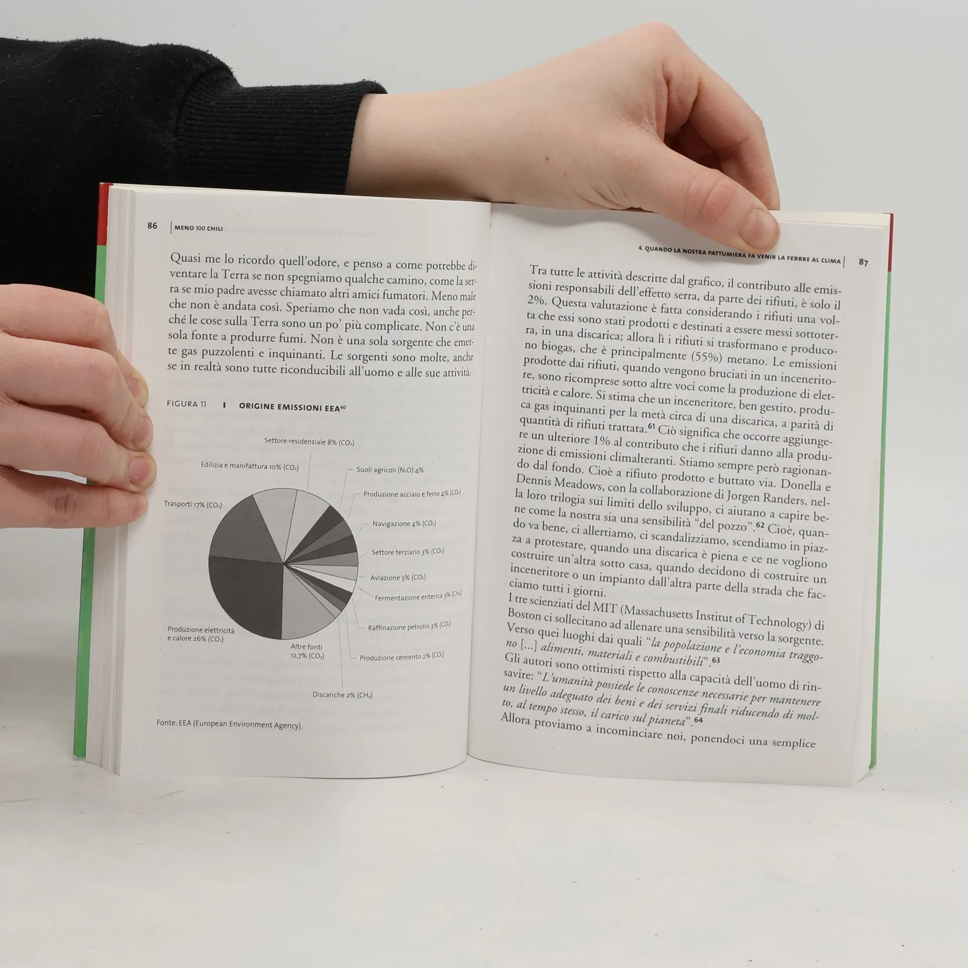 Ispirato a uno spettacolo teatrale che ha riscosso notevoli consensi, Meno 100 chili racconta come si può ridurre la quantità di rifiuti che produciamo ogni giorno a casa e al lavoro. Alternando l'approfondimento scientifico con racconti e aneddoti, Roberto Cavallo passa al setaccio le azioni che compongono la nostra quotidianità, e per ognuna ci indica come ridurre la quantità di spazzatura che potrebbe generarsi. Dai detersivi alla spina all'acqua del rubinetto, dai trucchi per ottenere il compost direttamente a casa propria all'uso degli ecopannolini. Dagli uffici che risparmiano carta ed elettricità alle feste di compleanno a zero rifiuti. I risultati potranno sorprenderci. Perché se è vero che produciamo un sacco di rifiuti, che inquinano e impongono la costruzione di discariche e inceneritori, è anche vero che ridurli è facile, vantaggioso e pure divertente.