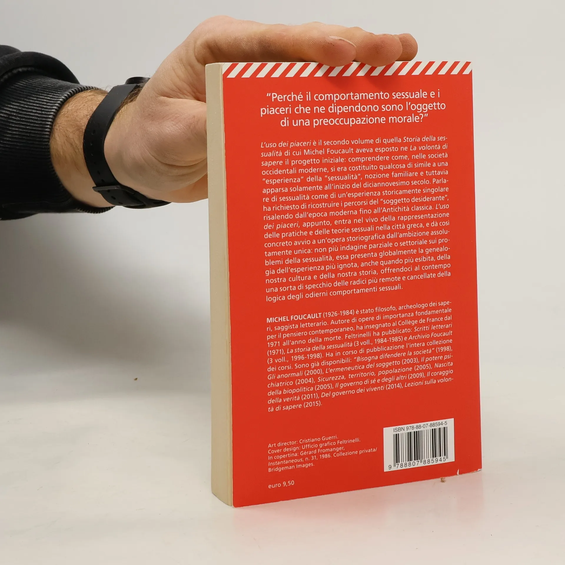 L'uso dei piaceri è il secondo volume di quella Storia della sessualità di cui Michel Foucault aveva esposto ne La volontà di sapere il progetto iniziale: comprendere come, nelle società occidentali moderne, si era costituito qualcosa di simile a una 'esperienza' della 'sessualità', nozione familiare e tuttavia apparsa solamente all'inizio del diciannovesimo secolo. Parlare di sessualità come di un'esperienza storicamente singolare ha richiesto di ricostruire i percorsi del 'soggetto desiderante', risalendo dall'epoca moderna fino all'Antichità classica. L'uso dei piaceri, appunto, entra nel vivo della rappresentazione delle pratiche e delle teorie sessuali nella città greca, e dà così concreto avvio a un'opera storiografica dall'ambizione assolutamente unica: non più indagine parziale o settoriale sui problemi della sessualità, essa presenta globalmente la genealogia dell'esperienza più ignota, anche quando più esibita, della nostra cultura e della nostra storia, offrendoci al contempo una sorta di specchio delle radici più remote e cancellate della logica degli odierni comportamenti sessuali.