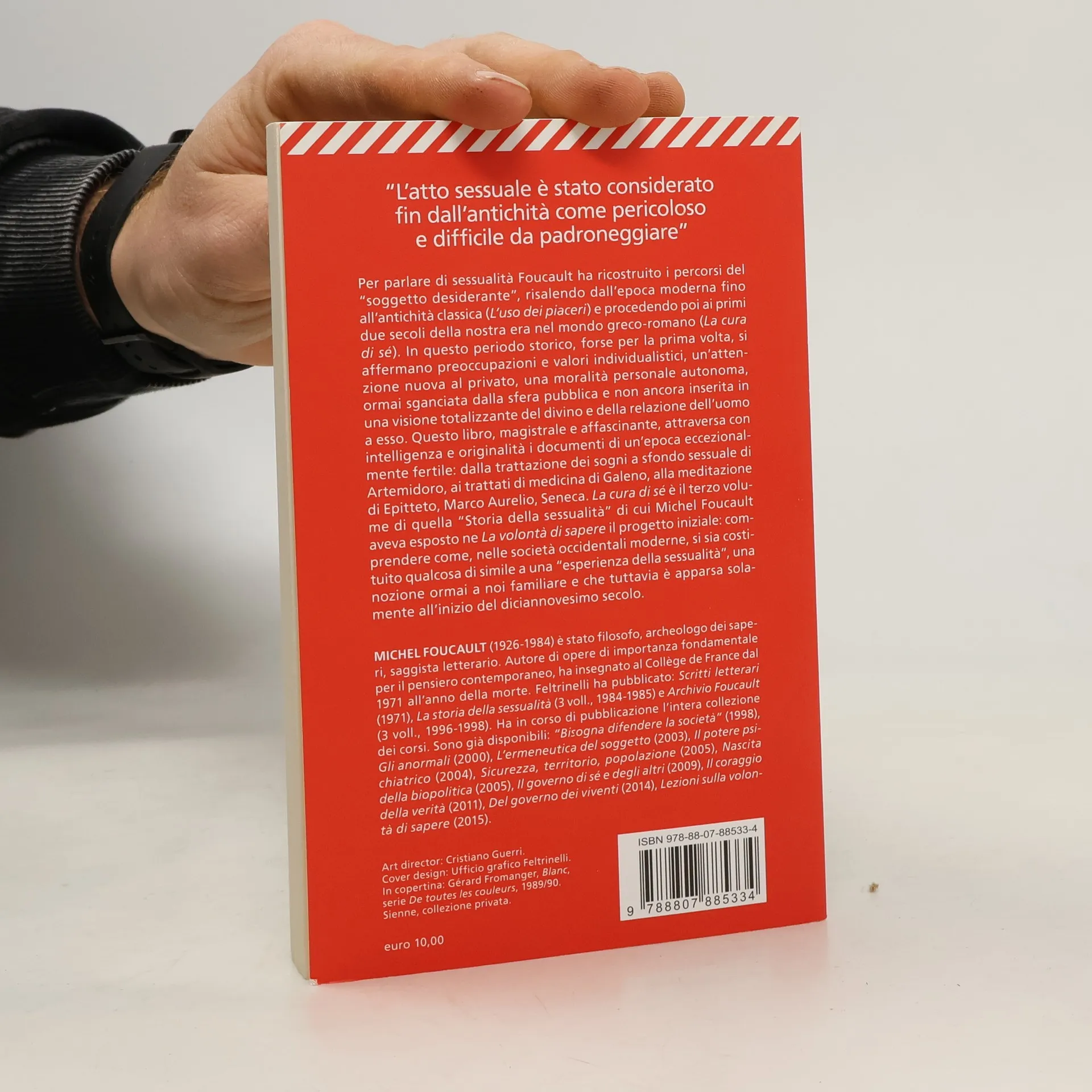 Per parlare di sessualità Foucault ha ricostruito i percorsi del "soggetto desiderante", risalendo dall'epoca moderna fino all'antichità classica ("L'uso dei piaceri") e procedendo poi ai primi due secoli della nostra era nel mondo greco-romano ("La cura di sé"). In questo periodo storico, forse per la prima volta si affermano preoccupazioni e valori individualistici, un'attenzione nuova al privato, una moralità personale autonoma, ormai sganciata dalla sfera pubblica e non ancora inserita in una visione totalizzante del divino e della relazione dell'uomo a esso. Questo libro attraversa con intelligenza e originalità i documenti di un'epoca eccezionalmente fertile: dalla trattazione dei sogni a sfondo sessuale di Artemidoro, ai trattati di medicina di Galeno, alla meditazione di Epitteto, Marco Aurelio, Seneca. "La cura di sé" è il terzo volume di quella "Storia della sessualità" di cui Michel Foucault aveva esposto ne "La volontà di sapere" il progetto iniziale: comprendere come, nelle società occidentali moderne, si sia costituito qualcosa di simile a una "esperienza della sessualità", una nozione ormai a noi familiare e che tuttavia è apparsa solamente all'inizio del diciannovesimo secolo.