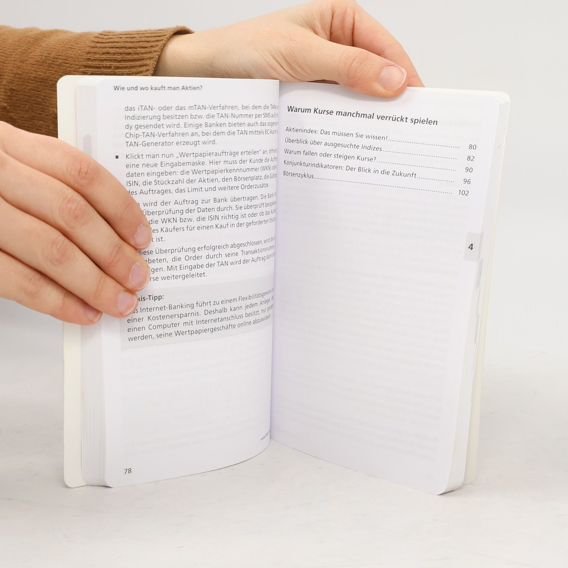 Investieren ohne Risiko Aktien gelten in Deutschland noch immer als riskante Anlageform. Mühsam Erspartes wird trotz niedriger Zinsen dem Sparbuch anvertraut. Dabei eignen sie sich sehr wohl als verlässlicher Bestandteil der Altersabsicherung. Der kompakte Ratgeber Schnellkurs Aktien für Einsteiger zeigt praxisnah, wie Geld in Aktien gewinnbringend angelegt werden kann. Grundbegriffe und Funktionsweise der Börse werden verständlich dargestellt, zuverlässig alle relevanten Fragen beantwortet: Was sind Aktien? Wann ist eine Aktie zu teuer, wann zu billig? Welche Faktoren beeinflussen den Kurs? Wie wird Geld inflationssicher angelegt? Wie lassen sich Trends erkennen und nutzen? Warum spielen Kurse verrückt?