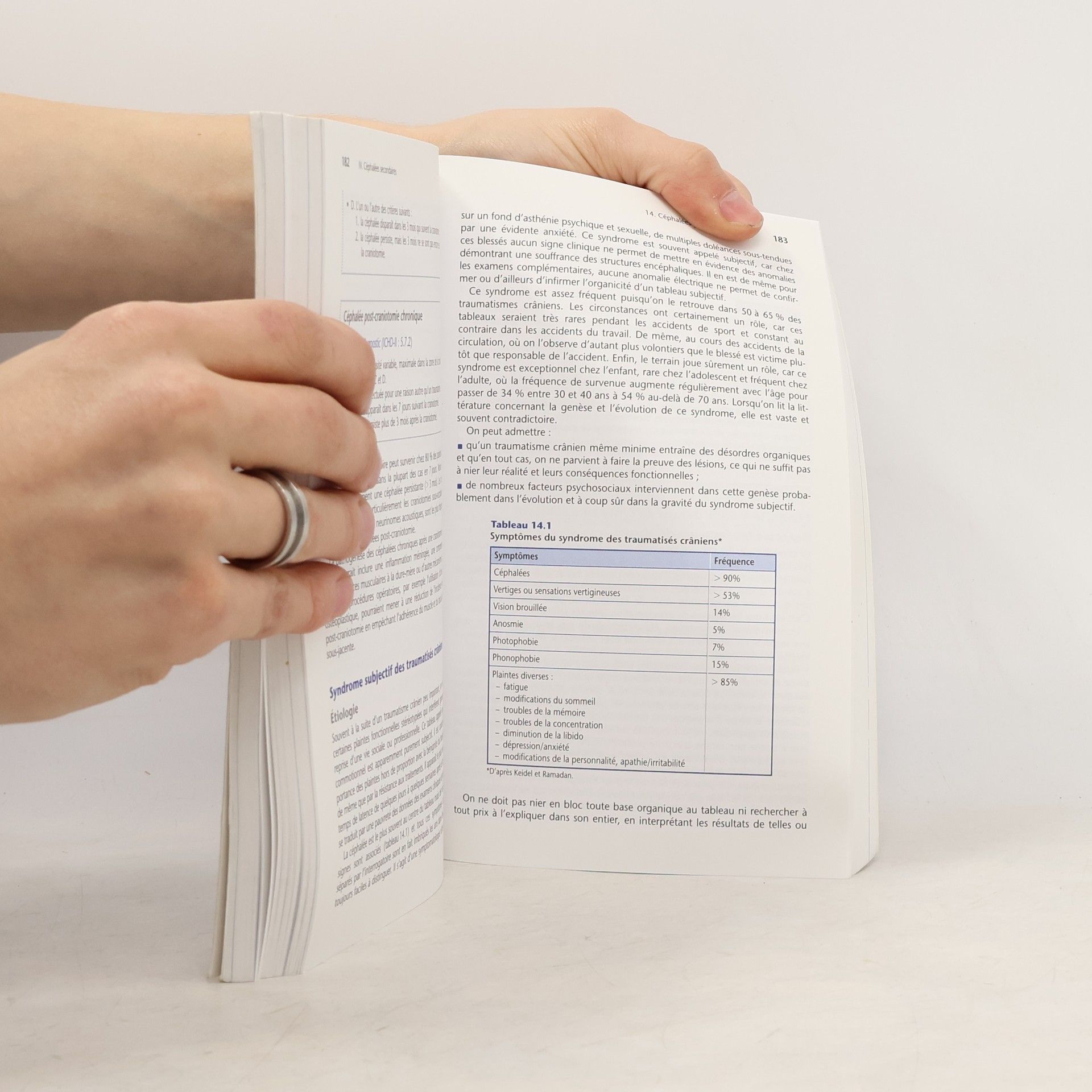 La cephalee est un des symptomes les plus frequents de la pratique medicale courante. Tout medecin peut y etre confronte dans le cadre de l'urgence ou d'une consultation programmee. Les causes des cephalees sont nombreuses, variees et correspondent a des affections de gravite tres differente, de la plus banale a la plus severe pouvant engager le pronostic vital. Il existe des regles simples a respecter pour le diagnostic et la prise en charge des cephalees, des signes d'alarme qui doivent inciter le generaliste a prendre un avis specialise ou a diriger son patient vers un service d'urgences. Cet ouvrage est compose de 5 parties: Orientation diagnostique, epidemiologie, impact socioeconomique, mecanismes, aspects genetiques et psychopathologiques des cephalees dans leur ensemble. Clinique et traitement de la migraine. Cephalees primaires autres que la migraine. Cephalees secondaires. Situations particulieres: urgences, enfant, femme enceinte et sujet age. Pour chacune de ces cephalees, les criteres de diagnostic de la classification internationale des cephalees servent de fil conducteur au livre.