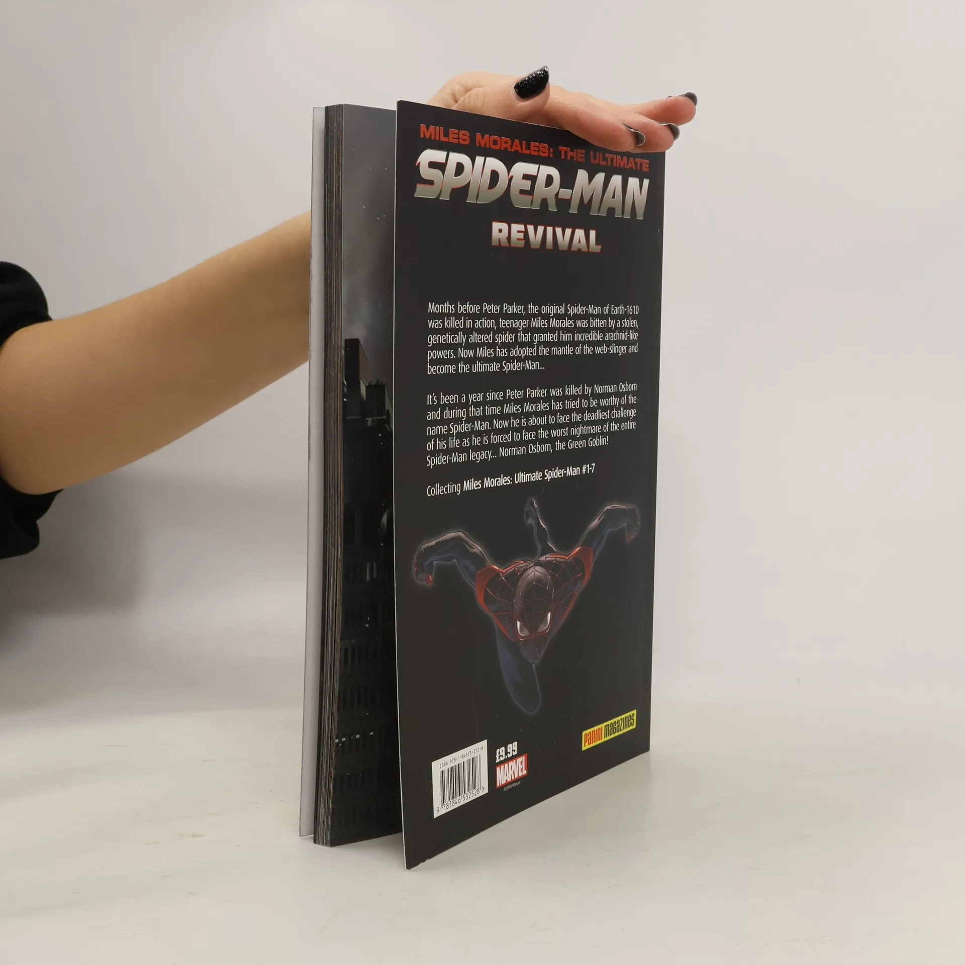 Miles Morales, the ultimate Spider-Man, is back in action with a new status quo and a new outlook on life! It's the anniversary of Peter Parker's death, but as the world mourns the original Spider-Man, a gathering of Spidey's friends and foes reveal some shocking truths about Peter and his world! A big, big villain from Peter's past is alive and well...and about to turn New York upside down! Now, Miles must come face to face with the worst nightmare of the Spider-Man legacy: Norman Osborn, the Green Goblin...the man who killed Peter Parker...or did he? Plus, Miles has made a huge choice about the woman he loves. Will he live to regret it?Collect Miles Morales: The Ultimate Spider-Man #1-7