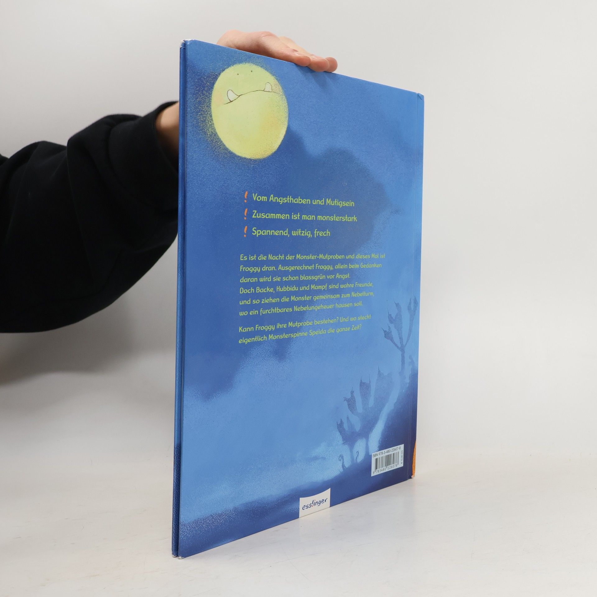 Monster-Mutproben: Nachdem sich beide erst gelangweilt haben, spielen Backe und Hubbidu den ganzen Nachmittag zusammen, essen anschliessend Brennesselsuppe und übernachten gemeinsam in Backes Bude. Plötzlich steht Froggy vor ihnen und ist fürchterlich aufgeregt, weil sie sich vom Nebelungeheuer verfolgt fühlt, und ausgerechnet heute ist die Nacht der Monster-Mutproben, die sie bestehen muss. Diesen Moment erkennt man daran, dass der Mutimoranus im Vollmond erscheint, so lautet das Monstergesetz. Nun gesellt sich auch noch Mampf, der auf der Suche nach Speida ist, zu seinen Freunden. Gemeinsam begeben sie sich zum Nebelturm, wo sich das furchtbare Ungeheuer versteckt halten könnte. Nun soll die vor Angst bibbernde Froggy also ihre Mutprobe bestehen. Ob sie es wohl schafft? Ihre Freunde unterstützen sie so gut sie können, obwohl: Sind wirklich alle so mutig, wie sie angeben? Und wo ist eigentlich Speida, die Monsterspinne? Eine monsterhaft illustrierte und spannend erzählte Geschichte vom Angsthaben und Mutigsein, die beweist, dass man gemeinsam stark ist, und das ist nicht nur bei Monstern der Fall! Ab 4 Jahren, ***, SIlvia Zanetti