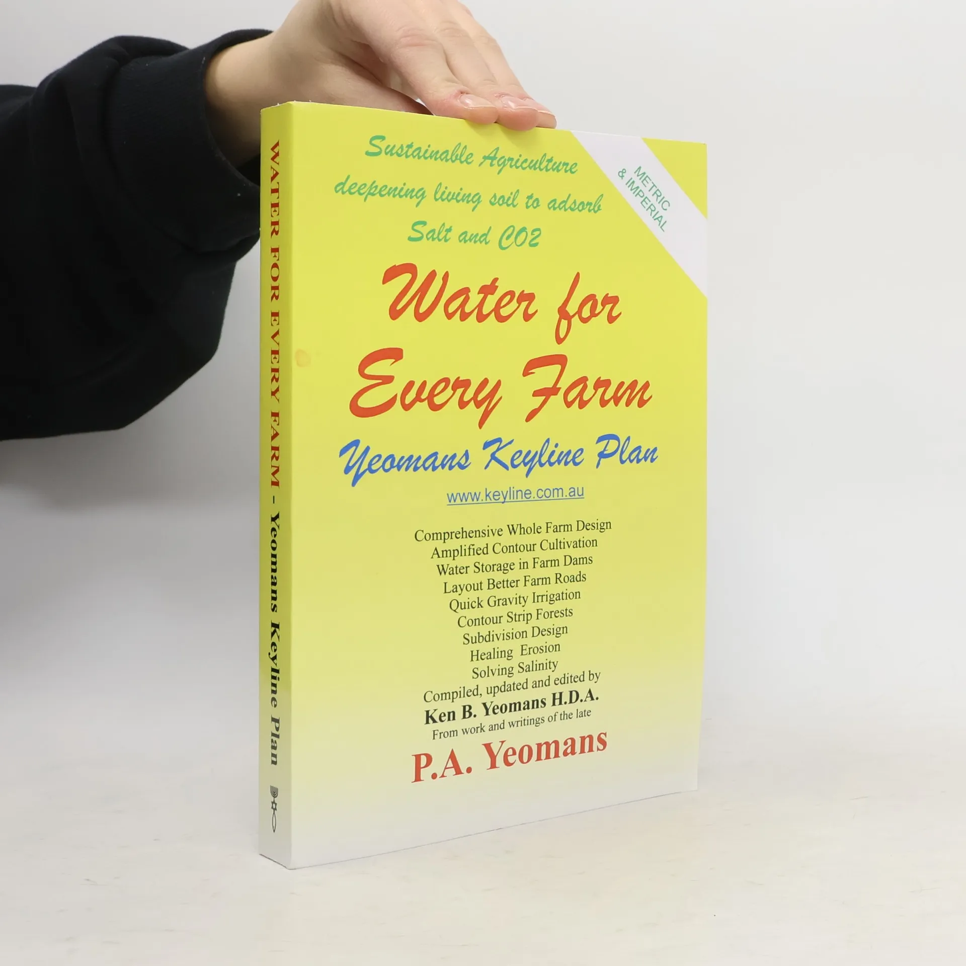 Blueprint for the regeneration and enhancement of soil and landscape through water control and land management. Based on material first published as 'The Keyline Plan' (P A Yeomans) in 1954, this substantially updated edition of Yeomans' 'Water For Every Farm' (1965, 1968) is edited by his son. Contains current examples, extra diagrams and photographs, and uses both metric and imperial measurements. Incorporates modified techniques adapted to new designs in agricultural machinery. Includes an index. The author, who died in 1984, was a mining geologist and pioneer of new soil fertility techniques in broadacre farming.