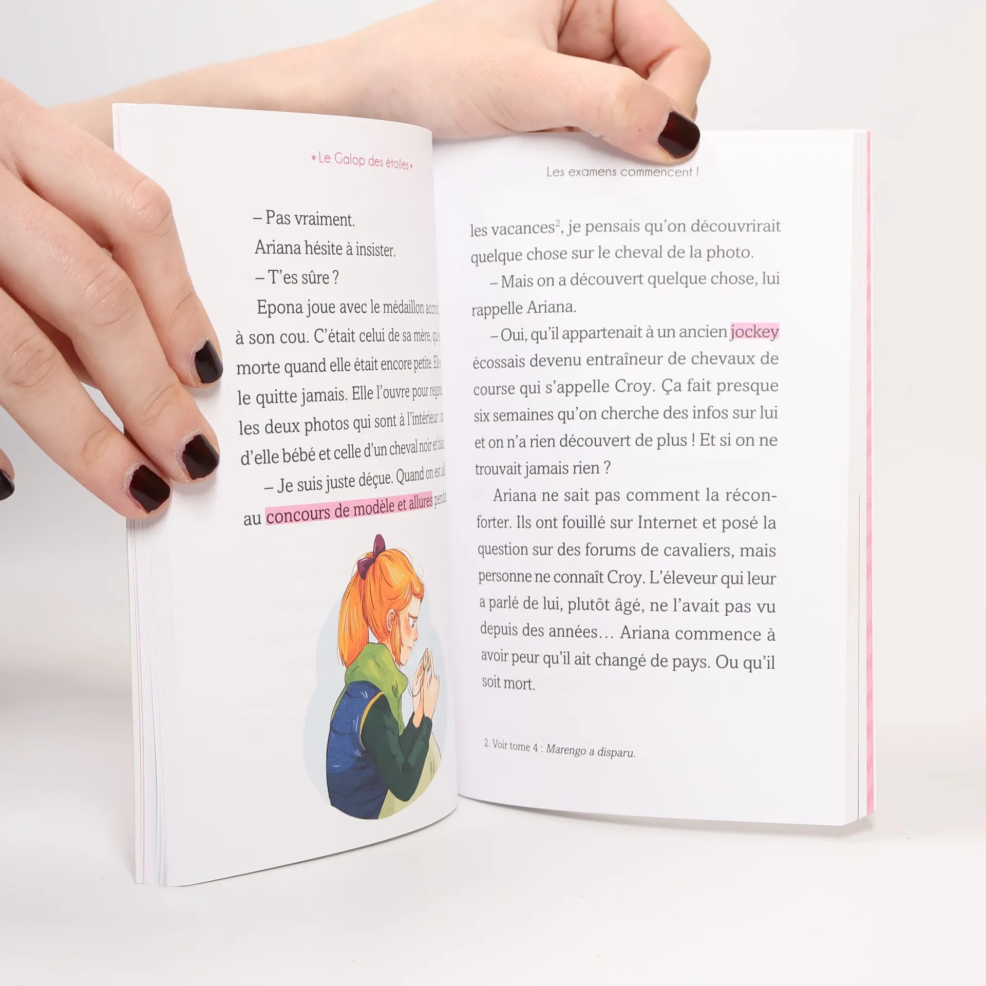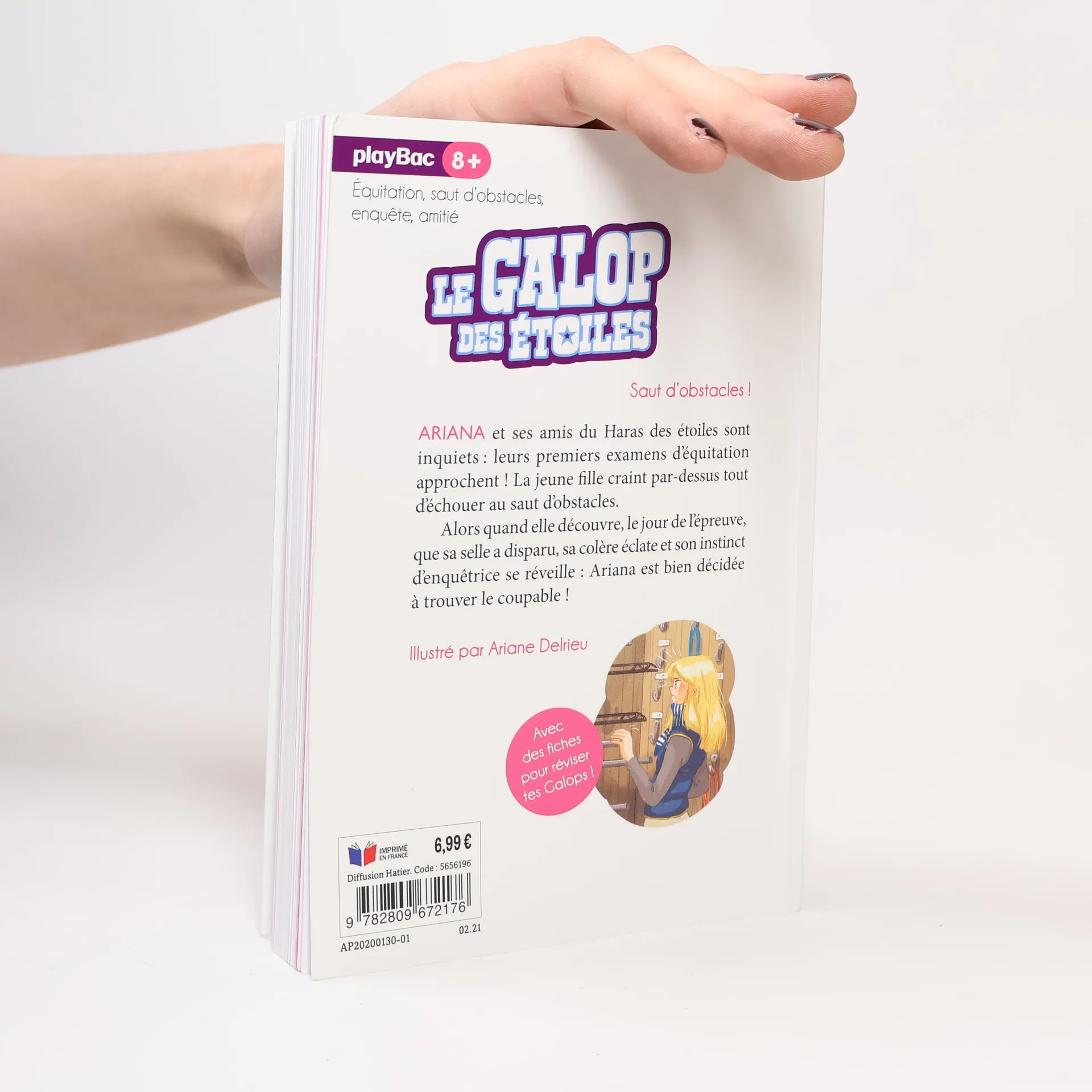 5 cavaliers entrent au prestigieux collège Le Haras des étoiles ! Ariana et ses amis du Haras des étoiles sont inquiets : leurs premiers examens d'équitation approchent ! La jeune fille craint par-dessus tout d'échouer au saut d'obstacles. Alors quand elle découvre, le jour de l'épreuve, que sa selle a disparu, sa colère éclate et son instinct d'enquêtrice se réveille : Ariana est bien décidée à trouver le coupable ! Avec des fiches pour réviser ses galops !