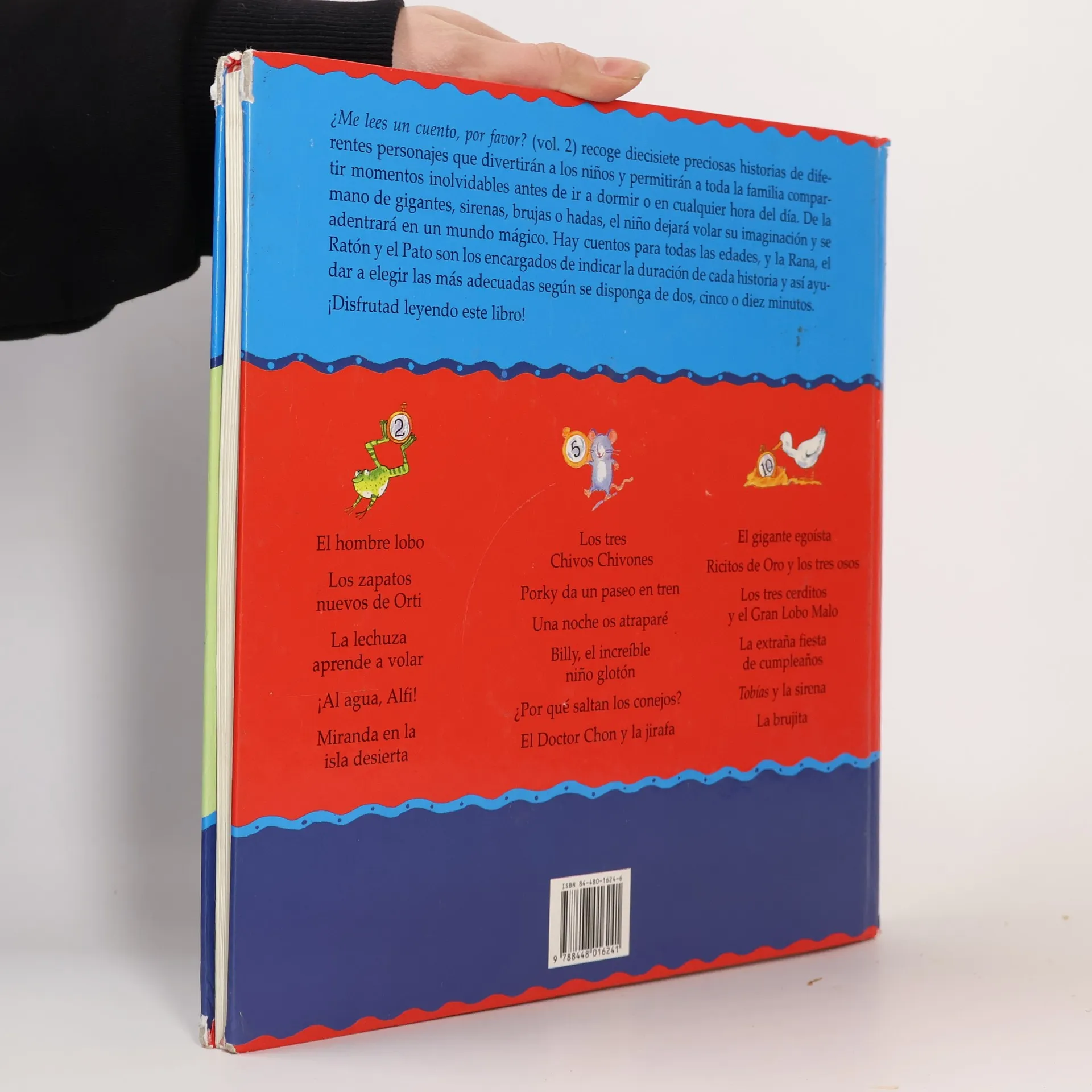Este libro recoge diecisiete preciosas historias de diferentes personajes que divertirán a los niños y permitirán a toda la familia compartir momentos inolvidables antes de ir a dormir o en cualquier hora del día. De la mano de gigantes, sirenas, brujas o hadas, el niño dejará volar su imaginación y se adentrará en un mundo mágico. Hay cuentos para todas las edades y la Rana, el Ratón y el Pato son los encargados de indicar la duración de cada historia y así ayudar a elegir las más adecuadas según se disponga de dos, cinco o diez minutos.Áreas de aprendizaje: Cuentos, Desarrollo de la fantasía y la imaginación
