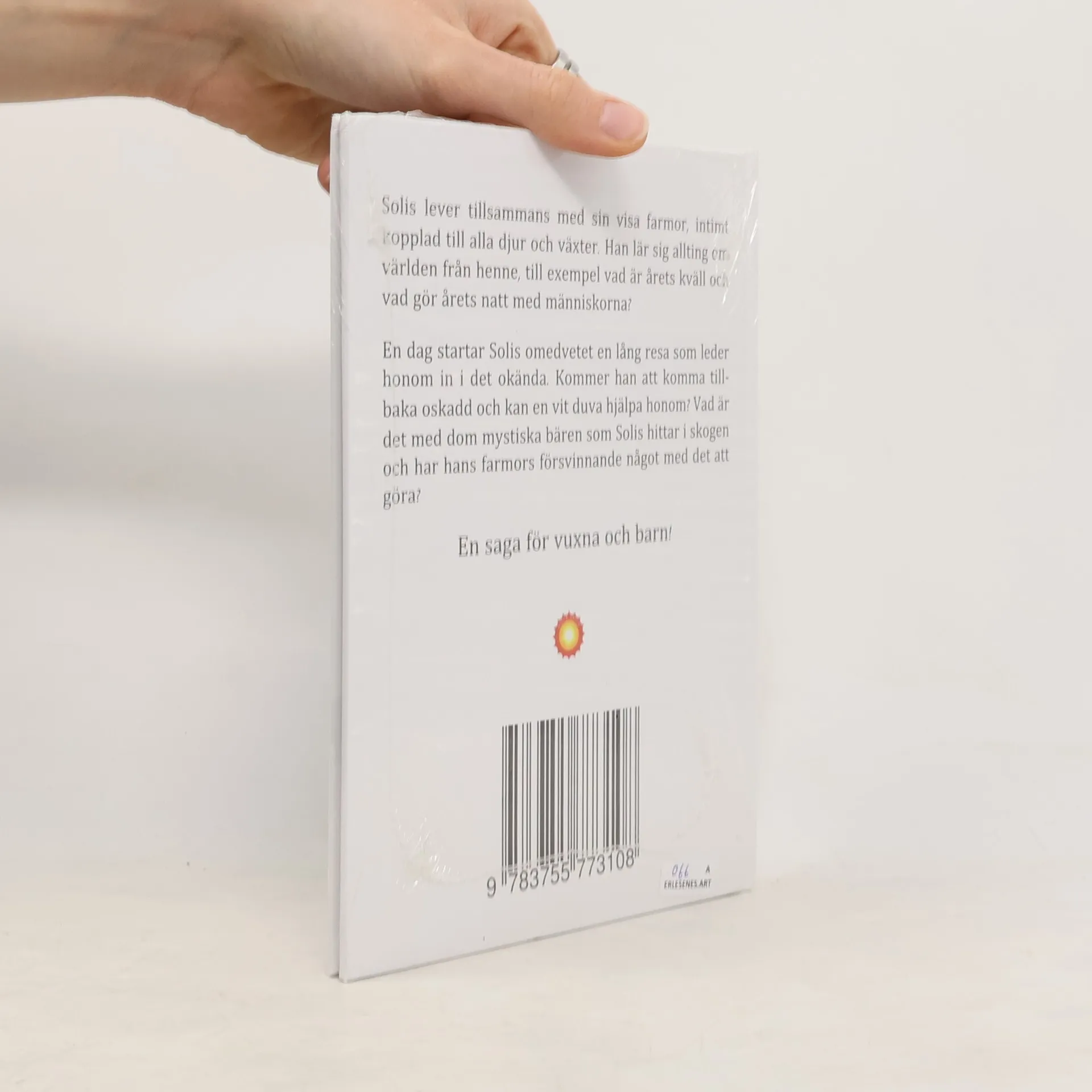 Solis lever tillsammans med sin visa farmor, intimt kopplad till alla djur och växter. Han lär sig allting om världen från henne, till exempel vad är årets kväll och vad gör årets natt med människorna? En dag startar Solis omedvetet en lång resa som le-der honom in i det okända. Kommer han att komma tillbaka oskadd och kan en vit duva hjälpa honom? Vad är det med dom mystiska bären som Solis hittar i skogen och har hans farmors försvinnande något med det att göra? En saga för vuxna och barn!