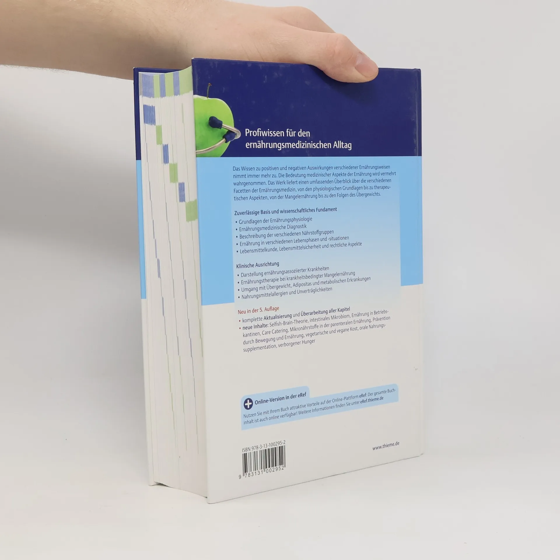 Das Wissen zu positiven und negativen Auswirkungen verschiedener Ernährungsweisen nimmt immer mehr zu. Auch medizinische Aspekte der Ernährung gewinnen an Bedeutung. Das Werk liefert einen Überblick über die verschiedenen Facetten der Ernährungsmedizin, von den physiologischen Grundlagen bis zu therapeutischen Aspekten, von der Mangelernährung bis zu den Folgen des Übergewichts. Neu: Komplette Aktualisierung und Überarbeitung aller Kapitel - Neue Inhalte: Selfish--Brain-Theorie, intestinales Mikrobiom, Ernährung in Kantinen und Catering, parenterale Ernährung, vegetarische und vegane Kost, orale Nahrungssupplementation, verborgener Hunger