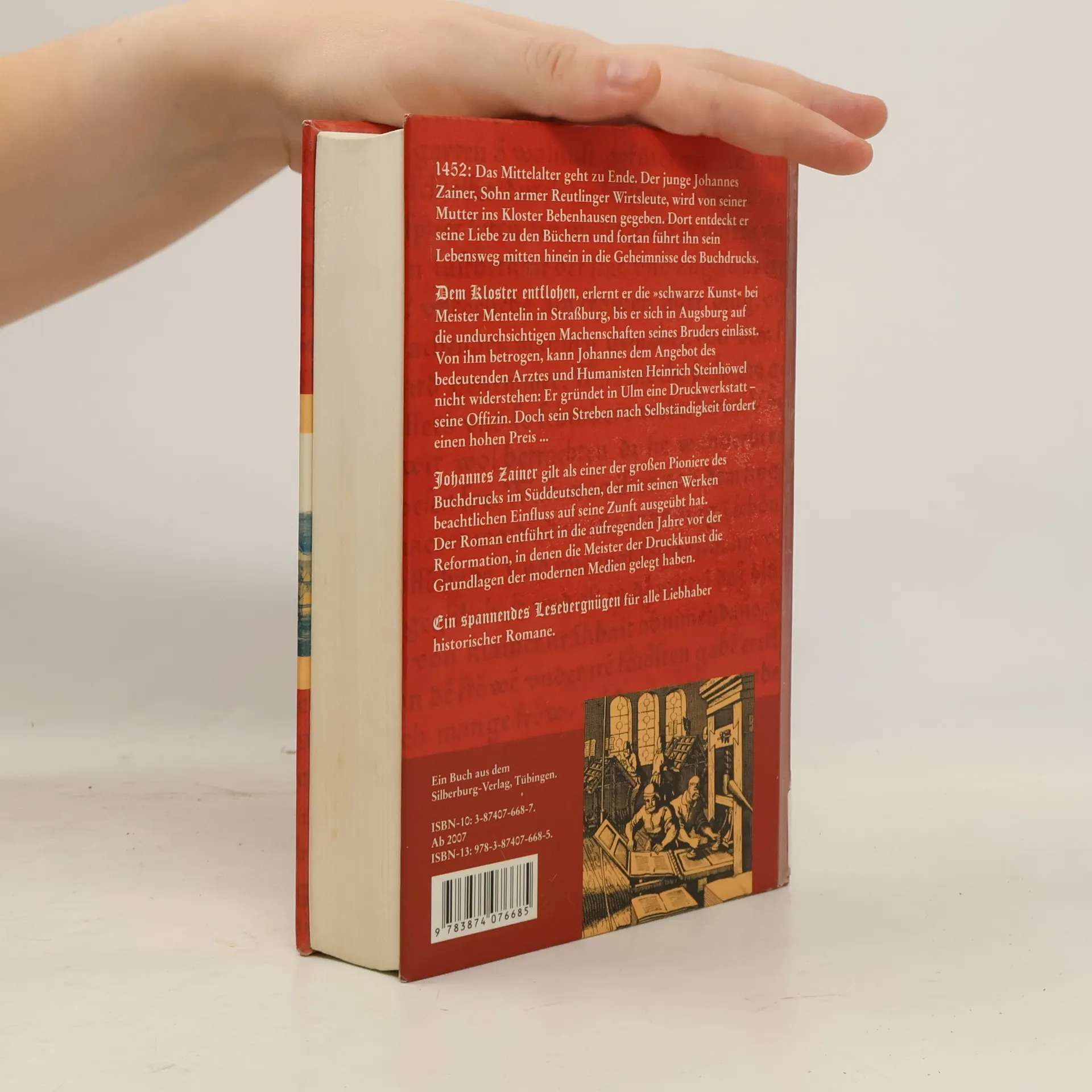 1452: Das Mittelalter geht zu Ende. Der junge Johannes Zainer, Sohn armer Reutlinger Wirtsleute, wird von seiner Mutter ins Kloster Bebenhausen gegeben. Dort entdeckt er seine Liebe zu den Büchern und fortan führt ihn sein Lebensweg mitten hinein in die Geheimnisse des Buchdrucks. Dem Kloster entflohen, erlernt er die 'schwarze Kunst' bei Meister Mentelin in Strassburg, bis er sich in Augsburg auf die undurchsichtigen Machenschaften seines Bruders einlässt. Von ihm betrogen, kann Johannes dem Angebot des bedeutenden Arztes und Humanisten Heinrich Steinhöwel nicht widerstehen: Er gründet in Ulm eine Druckwerkstatt – seine Offizin. Doch sein Streben nach Selbständigkeit fordert einen hohen Preis. Ein spannendes Lesevergnügen für alle Liebhaber historischer Romane.