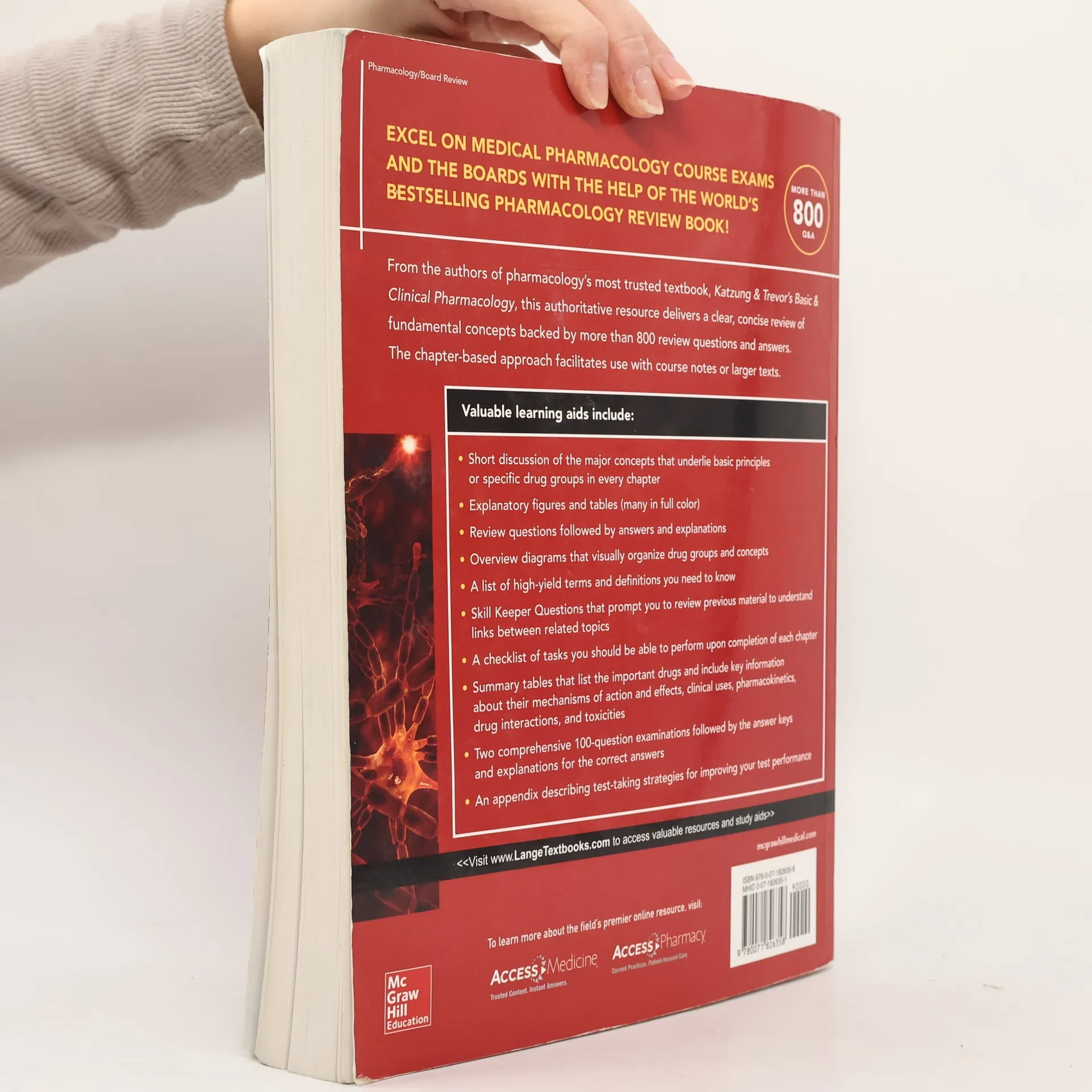 <b>Excel on medical pharmacology course exams and the boards with the help of the world's bestselling pharmacology review book!</b> <b> <i>More than 800 Q&A</i> </b> From the authors of pharmacology's most trusted textbook, <i>Katzung & Trevor's Basic & Clinical Pharmacology</i>, this authoritative resource delivers a clear, concise review of fundamental concepts backed by more than 800 review questions and answers. The chapter-based approach facilitates use with course notes or larger texts. Valuable learning aids include: Short discussion of the major concepts that underlie basic principles or specific drug groups in every chapter Explanatory figures and tables (many in full color) - Review questions followed by answers and explanations Overview diagrams visually organize drug groups and concepts A list of high-yield terms and definitions you need to know Skill Keeper Questions prompt you to review previous material to understand links between related topics A checklist of tasks you should be able to perform upon completion of each chapter Summary tables that list the important drugs and include key information about their mechanisms of action and effects, clinical uses, pharmacokinetics, drug interactions, and toxicities Two comprehensive 100-question examinations followed by the answer keys and explanations for the correct answers An appendix describing test-taking strategies for improving your test performance