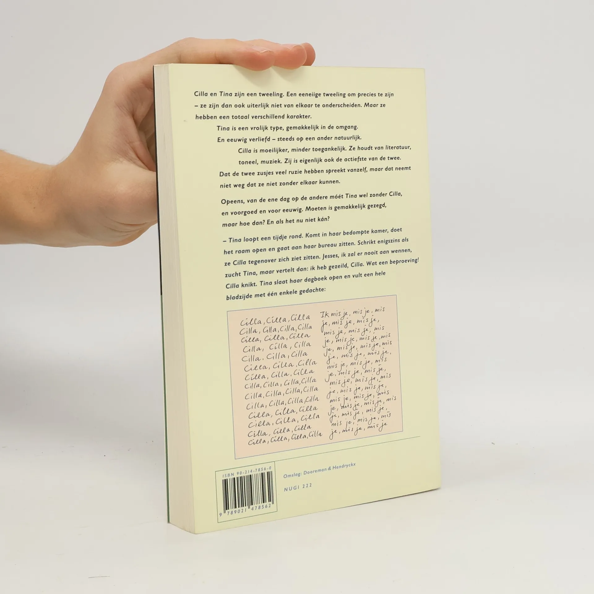 Cilla en Tina zijn een eeneiige tweeling. Ze zijn uiterlijk niet van elkaar te onderscheiden, maar hebben een totaal verschillend karakter. Tina is een vrolijk type, gemakkelijk in de omgang. En eeuwig verliefd... steeds op een ander natuurlijk. Cilla is moeilijker, minder toegankelijk. Zij houdt van literatuur, toneel, muziek. Zij is de actiefste van de twee. Dat de zusjes veel ruzie hebben spreekt vanzelf, maar dat neemt niet weg dat ze niet zonder elkaar kunnen. Opeens, van de ene dag op de andere, móét Tina wel zonder Cilla, voorgoed en voor eeuwig. Moeten is makkelijk gezegd, maar hóé dan? En als het nu niet kán?
