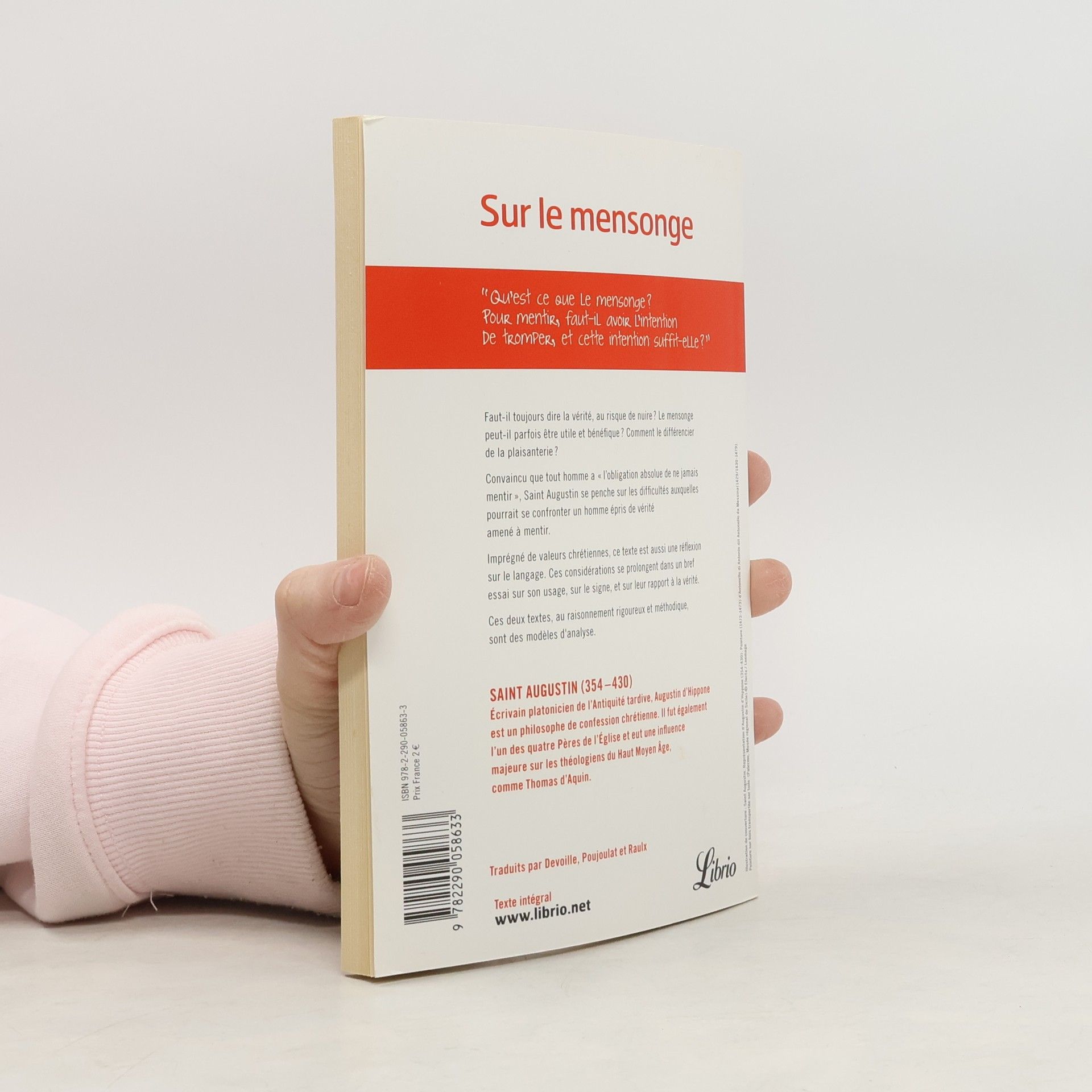 Faut-il toujours dire la vérité, au risque de nuire ? Le mensonge peut-il parfois être utile et bénéfique ? Comment le différencier de la plaisanterie ? Convaincu que tout homme a "l'obligation absolue de ne jamais mentir", Saint Augustin se penche sur les difficultés auxquelles pourrait se confronter un homme épris de vérité amené à mentir. Imprégné de valeurs chrétiennes, ce texte est aussi une réflexion sur le langage. Ces considérations se prolongent dans un bref essai sur son usage, sur le signe, et sur leur rapport à la vérité. Ces deux textes, au raisonnement rigoureux et méthodique, sont des modèles d'analyse.