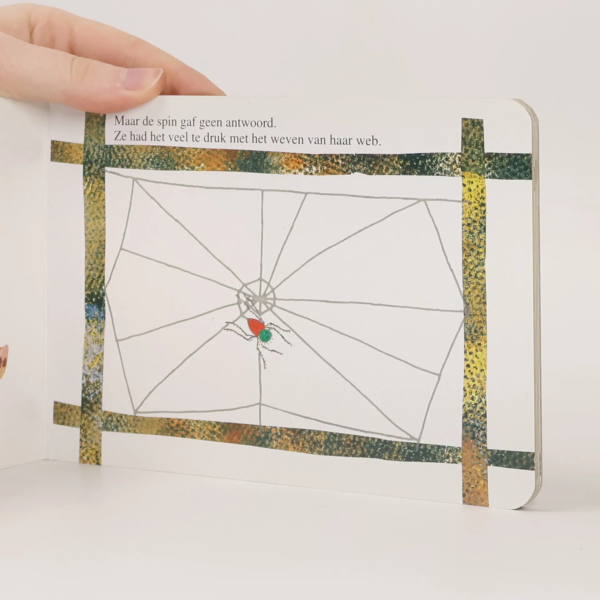 Op een mooie morgen werd een spin door een zacht briesje door de lucht gedragen. Een ragfijne draad slierde achter de spin aan. Toen landde ze op een hek, vlak bij het erf van een boerderij en begon een web te maken. Een web dat je echt kunt voelen als je met je vingers over de bladzijden gaat.