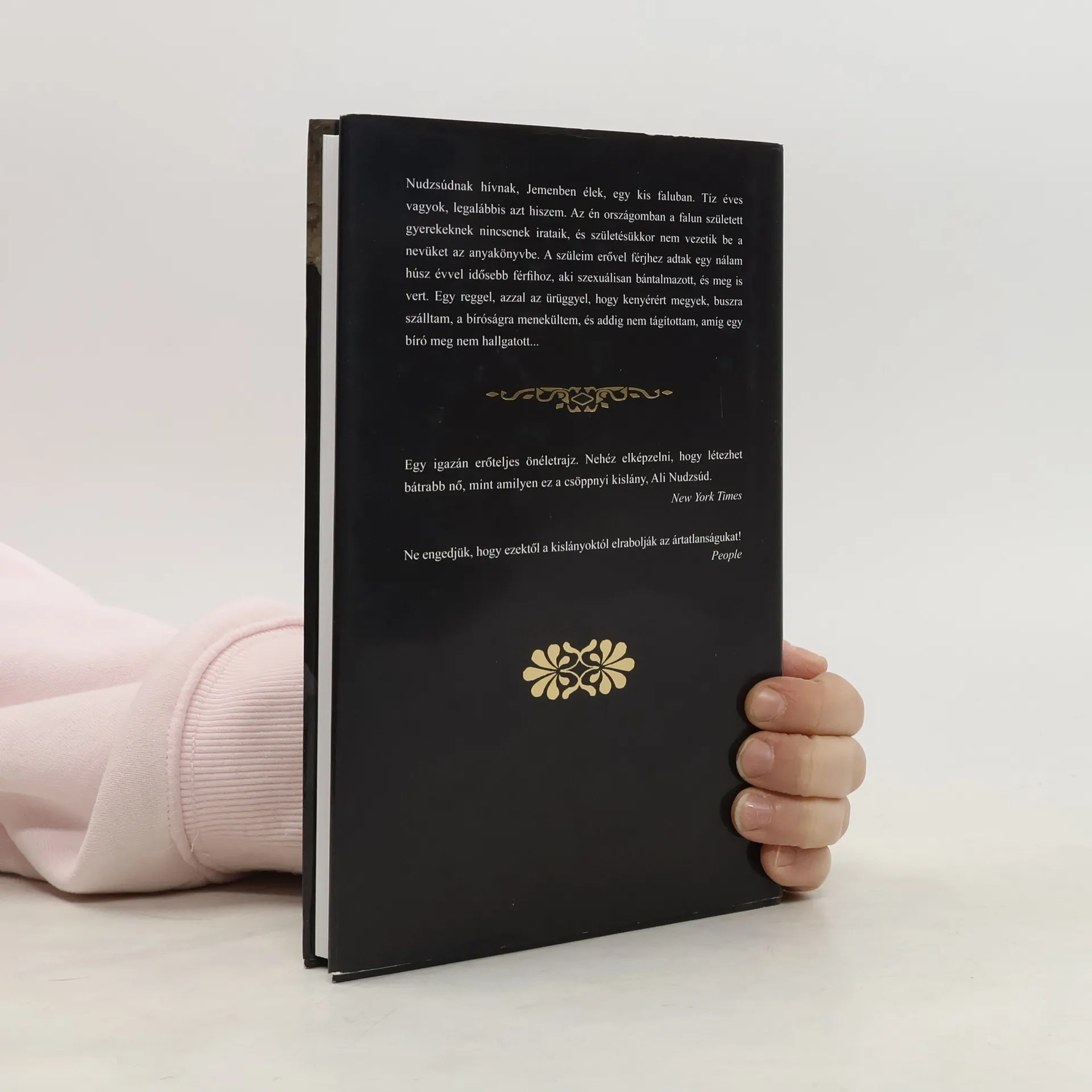 Ez a könyv egy jemeni kislány igaz története, akiben volt annyi bátorság, hogy szembeszálljon hazája hagyományaival és ősi törvényeivel: azt követelte, hogy elválhasson a férjétől. Ez sikerült is neki, elsőként egy olyan országban, ahol a lányok több mint felét tizennyolc éves koruk előtt adják férjhez. Nudzsúd története hatalmas visszhangot váltott ki a nemzetközi sajtóban, harca az egész világot megindította. Az áldozat szerepét a drámai hősnőére cserélve meséli el nekünk megrázó történetét. Hogy véget vessen a kényszerű hallgatásnak. Hogy bátorságot adjon a vele egykorú kislányoknak, és megmentse őket mindattól a szenvedéstől, amelyen ő keresztülment. Nudzsúdnak hívnak, Jemenben élek, egy kis faluban. Tíz éves vagyok, legalábbis azt hiszem. Az én országomban a falun született gyerekeknek nincsenek irataik, és születésükkor nem vezetik be a nevüket az anyakönyvbe. A szüleim erővel férjhez adtak egy nálam húsz évvel idősebb férfihoz, aki szexuálisan bántalmazott, és meg is vert. Egy reggel, azzal az ürüggyel, hogy kenyérért megyek, buszra szálltam, a bíróságra menekültem, és addig nem tágítottam, amíg egy bíró meg nem hallgatott... "Egy igazán erőteljes önéletrajz. Nehéz elképzelni, hogy létezhet bátrabb - avagy fiatalabb - elvált nő, mint amilyen ez a csöppnyi kislány, Ali Nudzsúd." -- New York Times "Az ő esete végre felrázta a közvéleményt: ne engedjük, hogy ezektől a kislányoktól elrabolják az ártatlanságukat! -- People A bátorság és kitartás nemzetközi példaképe." -- New Yorker