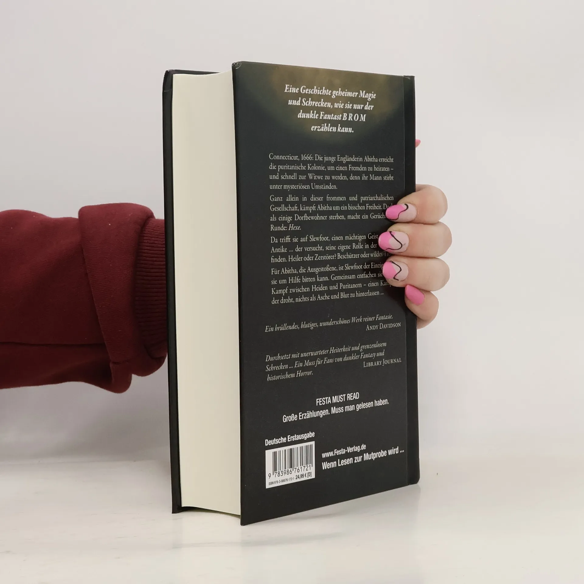 Eine Geschichte geheimer Magie und Schrecken, wie sie nur der dunkle Fantast BROM erzählen kann. Connecticut, 1666: Die junge Engländerin Abitha erreicht die puritanische Kolonie, um einen Fremden zu heiraten – und schnell zur Witwe zu werden, denn ihr Mann stirbt unter mysteriösen Umständen. Ganz allein in dieser frommen und patriarchalischen Gesellschaft, kämpft Abitha um ein bisschen Freiheit. Doch als einige Dorfbewohner sterben, macht ein Gerücht die Runde: Hexe. Da trifft sie auf Slewfoot, einen mächtigen Geist aus der Antike ... der versucht, seine eigene Rolle in der Welt zu finden. Heiler oder Zerstörer? Beschützer oder wildes Tier? Für Abitha, die Ausgestoßene, ist Slewfoot der Einzige, den sie um Hilfe bitten kann. Gemeinsam entfachen sie einen Kampf zwischen Heiden und Puritanern – ein Kampf, der droht, nichts als Asche und Blut zu hinterlassen … <strong>Andy Davidson:</strong> »Ein brüllendes, blutiges, wunderschönes Werk reiner Fantasie.« <strong>Library Journal:</strong> »Durchsetzt mit unerwarteter Heiterkeit und grenzenlosem Schrecken … Ein Muss für Fans von dunkler Fantasy und historischem Horror.« <strong>Clay McLeod Chapman:</strong> »Dämon oder nicht, böse oder nicht, der mächtige Junggeselle Slewfoot verdient unsere Liebe und Hingabe. Hoch lebe Brom, hoch lebe Slewfoot!« <strong>Booklist Reviews:</strong> »Für alle, die historischen Horror mit einer gesunden Dosis dunkler Fantasie, Hexerei und Rache mögen.« <strong>BookPage:</strong> »Ein gruseliger, kribbelnder, blutiger Spaß. Wenn du auf der Suche nach einer spannenden Hexengeschichte bist, die auch eine philosophische Tiefe hat, dann schnapp dir Slewfoot.« <strong>Mallory O'Meara:</strong> »Dieses Buch ist wie geschaffen für Liebhaber des Folk-Horrors und alle, die gern Spaß haben wollen.« Dieses Buch erscheint bei Festa in zwei Ausgaben. Beide enthalten mehr als zwei Dutzend von BROMs faszinierenden Bildern und Kapitelillustrationen. Die limitierte Vorzugsausgabe ist jedoch komplett in Farbe gedruckt und von BROM signiert. Sie ist von Hand nummeriert und limitiert auf 666 Exemplare.