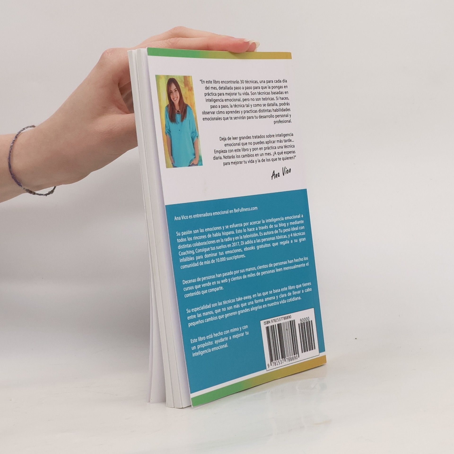 ¿Deseas cambios eficaces en tu vida? ¿Vives estresado, con problemas para dormir o olvidando lo más importante? Muchas veces, tus emociones afectan a quienes menos culpa tienen, como tu familia o pareja, porque no controlas tus emociones; ellas te controlan a ti. No estás solo. La vida diaria nos consume, y nuestras emociones son señales de lo que ignoramos. Formas parte del 90% que se olvida de vivir, y por eso buscas un cambio. Has oído hablar de la Inteligencia Emocional y sus beneficios. Con control sobre tus emociones, mejorarás tu vida personal y profesional. Nos enseñan matemáticas y ciencias, pero no cómo gestionar nuestras emociones. La Inteligencia Emocional abarca habilidades que nos ayudan a conocernos mejor, a comunicar nuestras emociones y a mejorar nuestras relaciones. Soy Ana Vico, psicóloga y coach, y me considero Entrenadora Emocional. He diseñado un curso práctico para que aprendas a regular tus emociones y generes un cambio positivo en tu vida. Este libro ofrece 30 técnicas, una para cada día del mes, detalladas paso a paso para que las apliques y observes tu progreso. Deja atrás los tratados teóricos y comienza a aplicar una técnica diaria. Notarás cambios en un mes. ¿Qué esperas para mejorar tu vida y la de quienes te rodean?