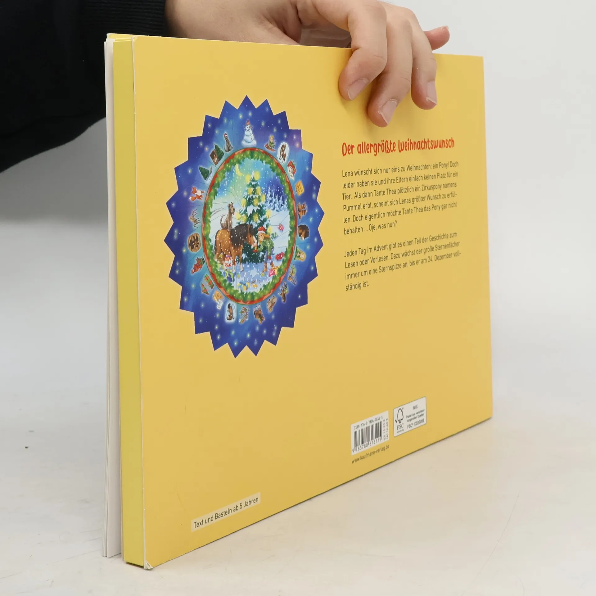 <strong>Ein Buch-Adventskalender mit Sternenfächer für Kinder ab 5 Jahren - Vorlesen und kreativ sein </strong> Die Geschichte: Lena wünscht sich nur eins zu Weihnachten: ein Pony! Doch leider haben sie und ihre Eltern einfach keinen Platz dafür. Als dann Tante Thea plötzlich ein Zirkuspony namens Pummel erbt, scheint sich Lenas größter Wunsch erfüllt zu haben. Doch eigentlich möchte Tante Thea das Pony gar nicht behalten … Und nun? In diesem Weihnachtskalender wird eine Weihnachtsgeschichte für kleine Pferdefans erzählt. Jeden Tag im Advent gibt es einen Teil der Geschichte zum Lesen oder Vorlesen. Dazu wächst der große Sternenfächer immer um eine Sternspitze an, bis er am 24. Dezember vollständig ist. <strong>Ein Adventskalender als Buch:</strong> • Eine Geschichte für jüngere Kinder: In diesem Weihnachtskalender wird eine süße Ponygeschichte in 24 Kapiteln erzählt. • Mit einem großen Sternenfächer zum Aufhängen: Am 1. Dezember kann der noch zusammengeklappte Stern aufgehängt und dann jeden Tag um eine Element weiter aufgefächert werden. • Für Mädchen und Jungen ab 5 Jahren: Zum Vorlesen / zusammen Lesen geeignet. • Schön auch zum Vorlesen in der Runde: In der Familie, dem Kindergarten, der Kita, der Gemeinde, ... • Das Kinderbuch enthält neben der Adventskalendergeschichte viele kleine zauberhafte Illustrationen der weihnachtlichen Pferdegeschichte. Mit diesem Adventskalenderbuch heißt es jeden Tag im Advent: Eintauchen und mitmachen. Ein schönes Geschenk und eine tolle Beschäftigung für die Vorweihnachtszeit und den Advent - ganz ohne Schokolade und ohne Vorbereitungen!