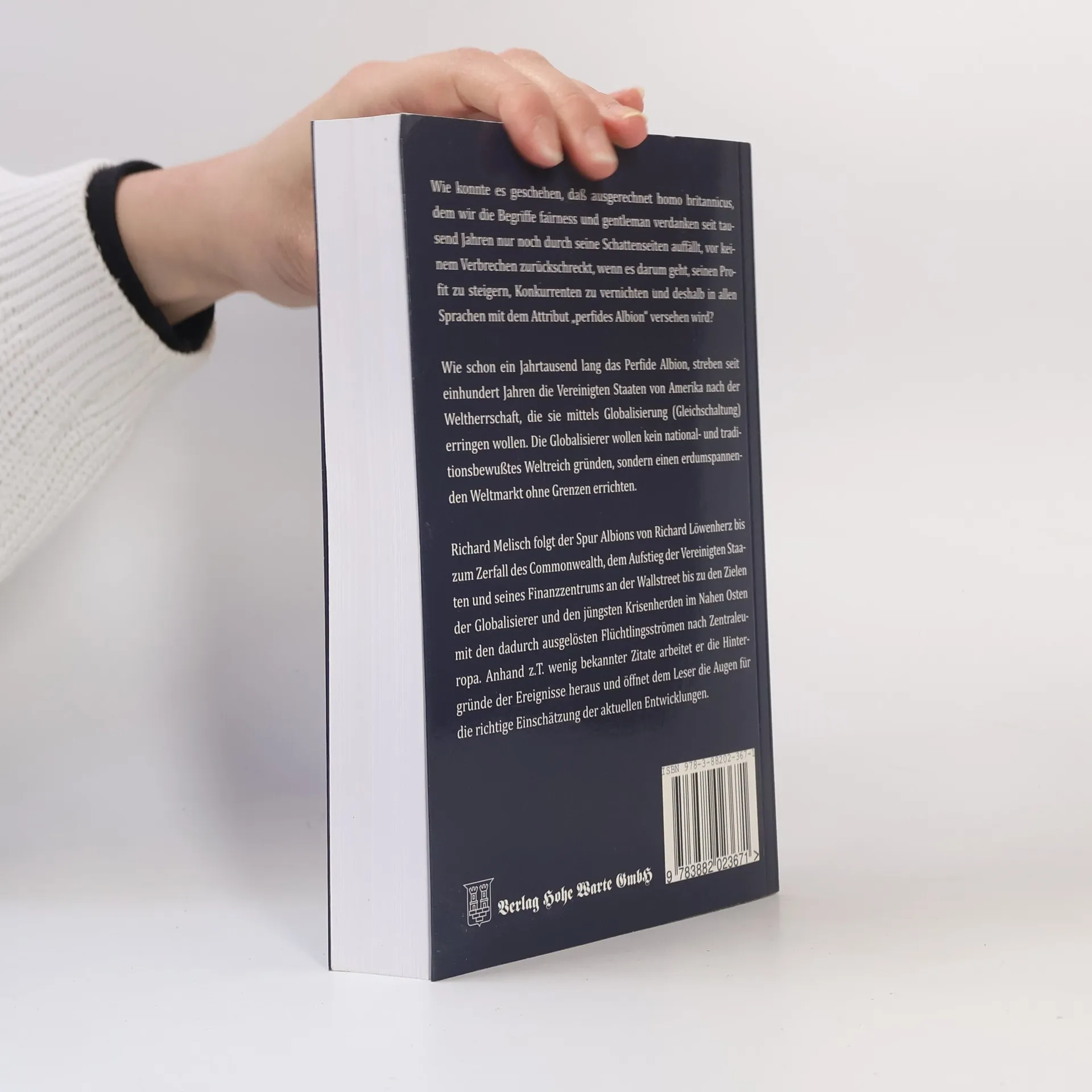 Wie konnte es geschehen, dass ausgerechnet homo britannicus, dem wir die Begriffe fairness und gentleman verdanken, seit tausend jahren nur noch durch seine Schattenseiten auffällt, vor keinem Verbrechen zurückschreckt, wenn es darum geht, seinen Profit zu steigern, Konkurrenten zu vernichten und deshalb in allen Sprachen mit dem Attribut „perfides Albion“ versehen wird. Wie schon ein Jahrtausend lang das Perfide Albion, streben seit einhundert Jahren die Vereinigten Staaten von Amerika nach der Weltherrschaft, die sie mittels Globalisierung (Gleichschaltung) erringen wollen. Die Globalisierer wollen kein national- und traditionsbewußtes Weltreich gründen, sondern einen erdumspannenden Weltmarkt ohne Grenzen errrichten. Richard Melisch folgt der Spur Albions von Richard Löwenherz bis zum Zerfall des Commonwealth, dem Aufstieg der Vereinigten Staaten und seines Finanzzentrums an der Wallstreet bis zu den Zielen der Globalisierung und den jüngsten Krisenherden im Nahen Osten mit den dadurch ausgelösten Flüchtlingsströmern nach Zentraleuropa. Anhand z. T. wenig bekannter Zitate arbeitet er die Hintergründe der Ereignisse heraus und öffnet dem Leser die Augen für die richtige Einschätzung der aktuellen Entwicklungen.