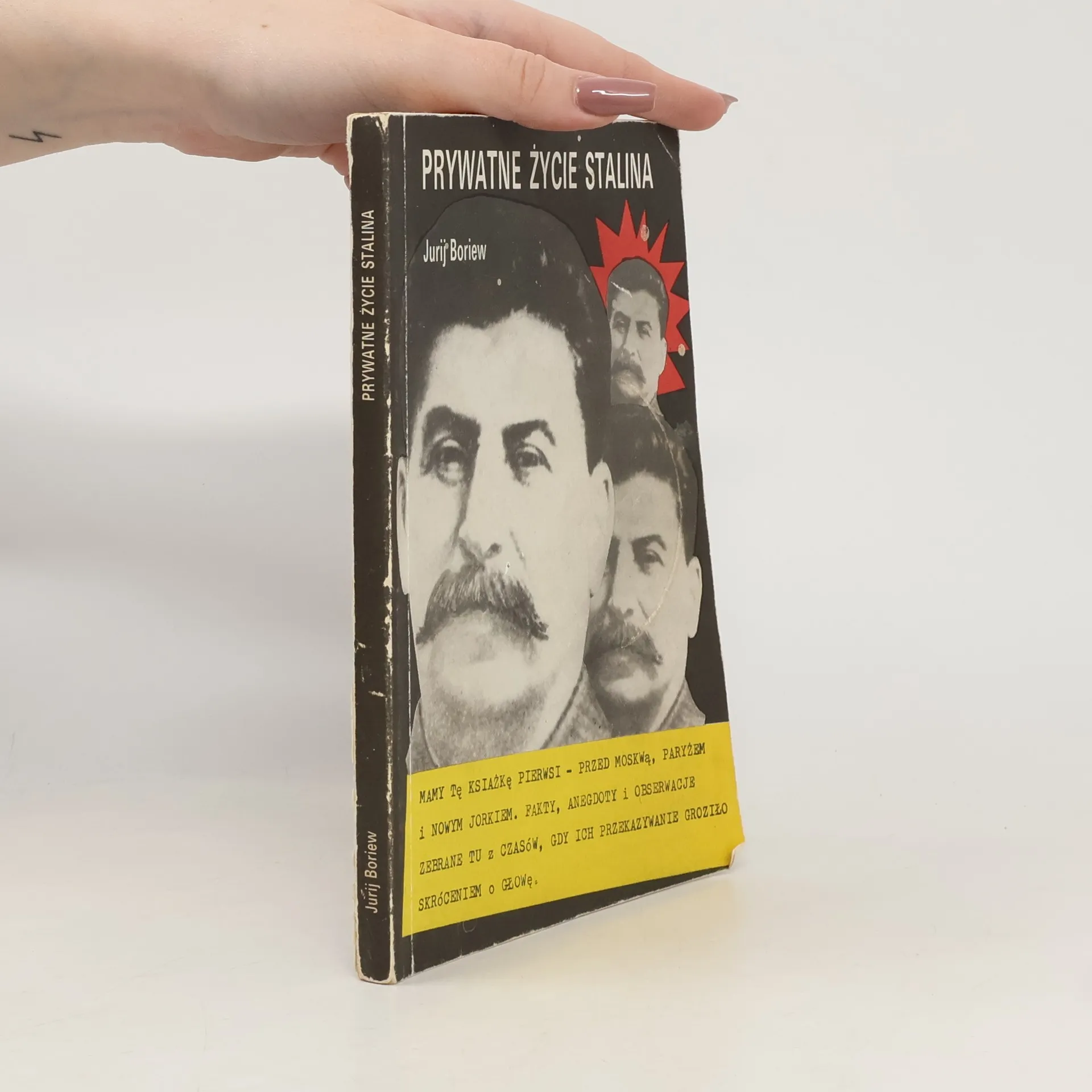 Jurij Boriew - pisarz, filozof. Przez prawie 50 lat zbierał opowieści ludzi, którzy mieli bezpośredni kontakt z krwawym dyktatorem Józefem Stalinem. Z tych relacji powstała właśnie ta książka. Z jej lektury dowiecie się kim był w istocie Stalin, kim byli jego rodzice, ile miał żon, kogo kochał, kogo nienawidził, co jadł i jak mieszkał, w jaki sposób skazywał ludzi i jak ich ułaskawiał... Poprzez Stalina poznacie także wiele niedyskrecji z życia wielkich tamtej epoki: Lenina, Krupskiej, Bucharina, Zinowiewa, Ordżonikidze, Kirowa, Mołotowa, Berii, Ribbentropa, Churchilla, Hitlera, Tołstoja, Gorkiego, Babla, Bułhakowa, Pasternaka, Szołochowa, Fadiejewa i wielu innych. W sumie, poznacie prywatność generalissimusa, który i na naszej historii odcisnął swoje krwawe piętno.