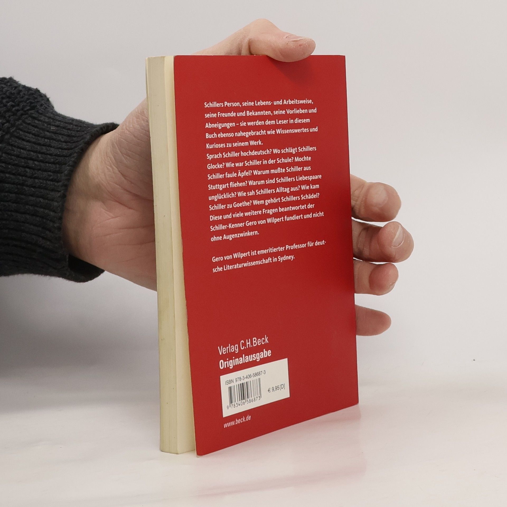 Schillers Lebens- und Arbeitsweise, seine Freunde und Bekannten, seine Vorlieben und Abneigungen – sie stehen im Mittelpunkt dieses Buches. Dabei lernt der Leser nicht nur die Person Schiller kennen, sondern erfährt auch Wissenswertes und Kurioses über sein Werk. Sprach Schiller hochdeutsch? Wo schlägt Schillers Glocke? Wie war Schiller in der Schule? Mochte Schiller faule Äpfel? Warum mußte Schiller aus Stuttgart fliehen? Warum sind Schillers Liebespaare unglücklich? Wie sah Schillers Alltag aus? Wie kam Schiller zu Goethe? Wem gehört Schillers Schädel? Diese und viele weitere Fragen beantwortet der Schiller-Kenner Gero von Wilpert fundiert und nicht ohne Augenzwinkern.