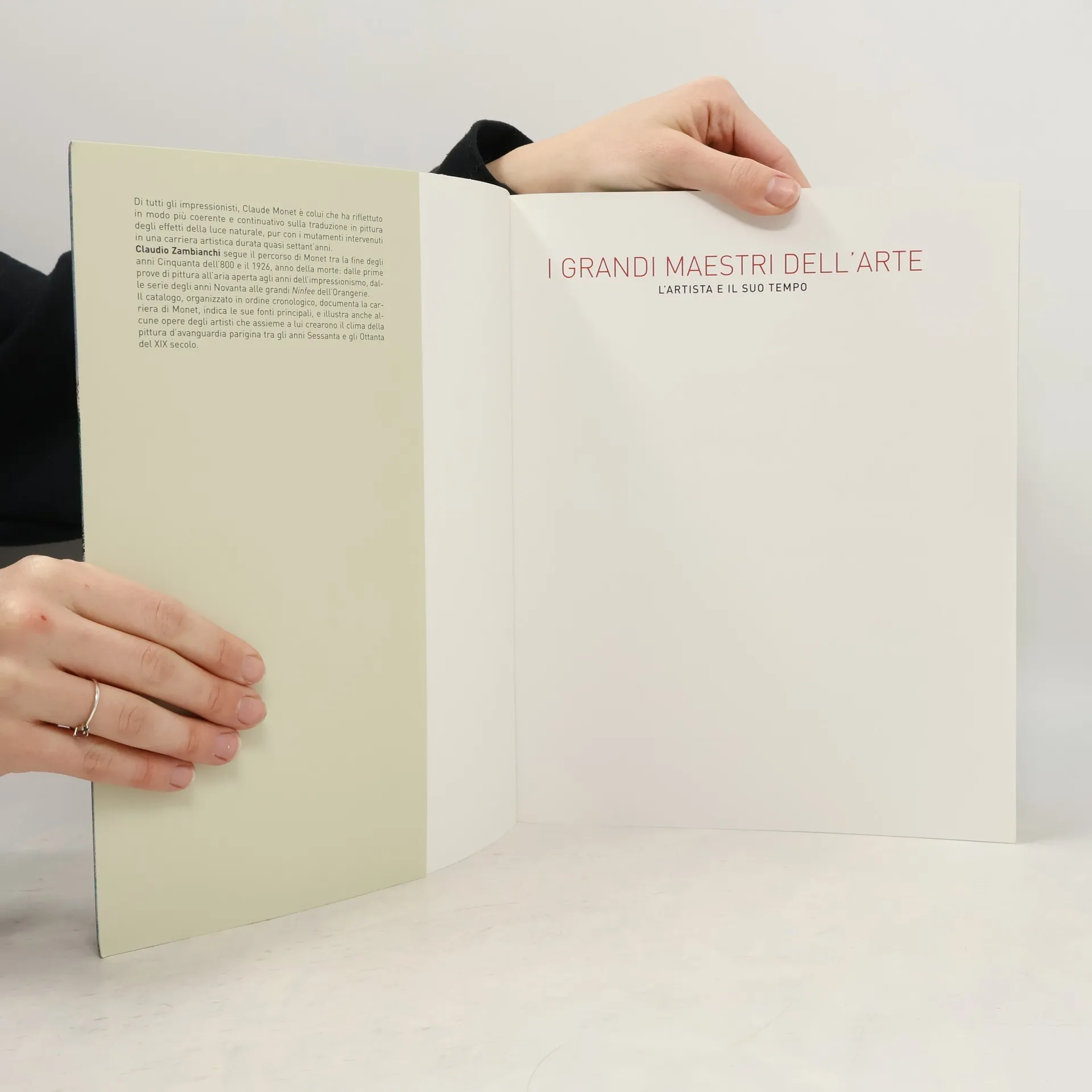 Di tutti gli impressionisti, Claude Monet è colui che ha riflettutonin modo più coerente e continuativo sulla traduzione in pittura degli effetti della luce naturale, pur con i mutamenti intervenuti in una carriera artistica durata quasi settant'anni. Claudio Zambianchi segue il percorso di Monet tra la fine degli anni Cinquanta dell'800 e il 1926, anno della morte: dalle prime prove di pittura all'aria aperta agli anni dell'impressionismo, dalle serie degli anni Novanta alle grandi Ninfee dell'orangerie. Il catalogo, organizzato in ordine cronologico, documenta la carriera di Monet, indica le sue fonti principali, e illustra anche alcune opere degli artisti che assieme a lui crearono il clima della pittura d'avanguardia parigina tra gli anni Sessanta e gli Ottanta del XIX secolo. Charles-François Daubigny, Eugène Boudin, Camille Pissarro, Edouard Manet, Edgar Degas, Alfred Sisley, Frédéric bazille, berthe Morisot, Pierre-Auguste Renoir, Georges Seurat.