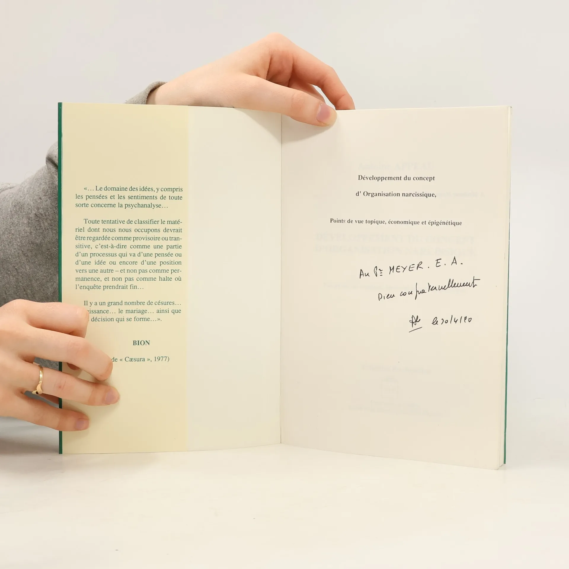 Si nous avions découvert avec le livre sur “L’Organisation Narcissique” le travail du psychanalyste, nous découvrons ici un auteur qui, par sa profonde identification à la méthode psychanalytique, nous montre une capacité peu commune à la frustration du concept et à sa réfutabilité.