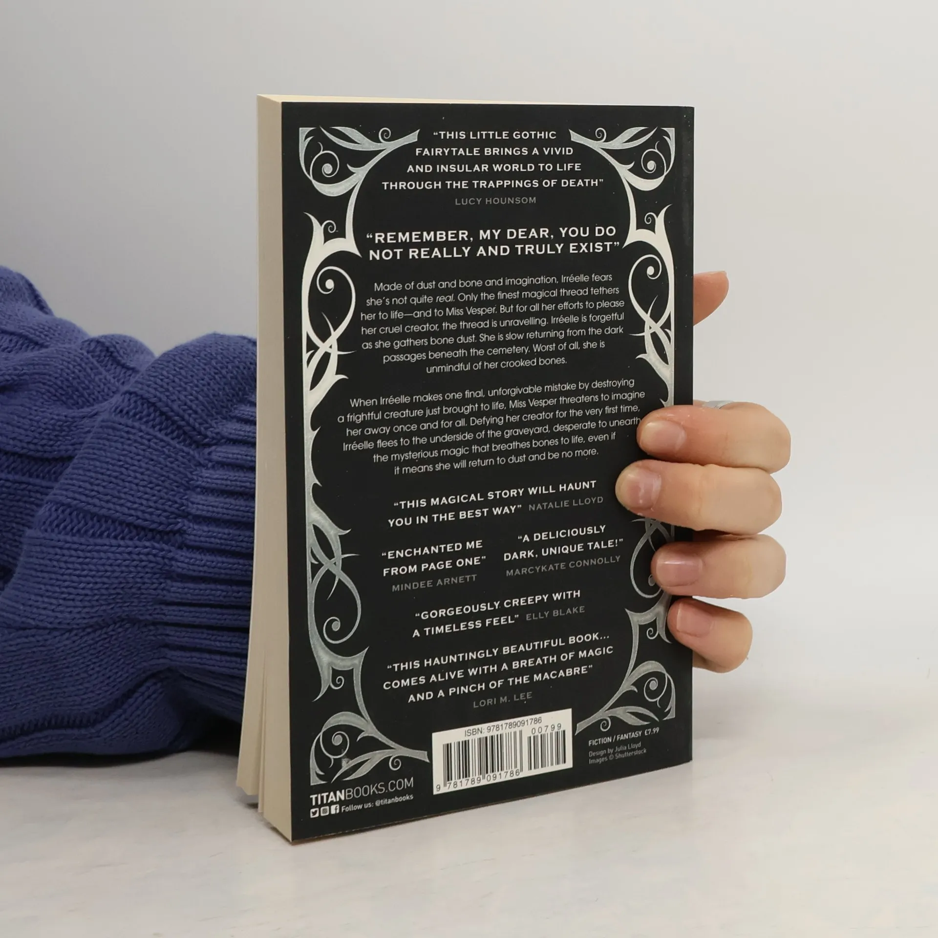 <i>“Remember, my dear, you do not really and truly exist.” </i> Irréelle fears she’s not quite <i>real</i>. Only the finest magical thread tethers her to life—and to Miss Vesper. But for all her efforts to please her cruel creator, the thread is unraveling. Irréelle is forgetful as she gathers bone dust. She is slow returning from the dark passages beneath the cemetery. Worst of all, she is unmindful of her crooked bones. When Irréelle makes one final, unforgivable mistake by destroying a frightful creature just brought to life, Miss Vesper threatens to imagine her away once and for all. Defying her creator for the very first time, Irréelle flees to the underside of the graveyard and embarks on an adventure to unearth the mysterious magic that breathes bones to life, even if it means she will return to dust and be no more.