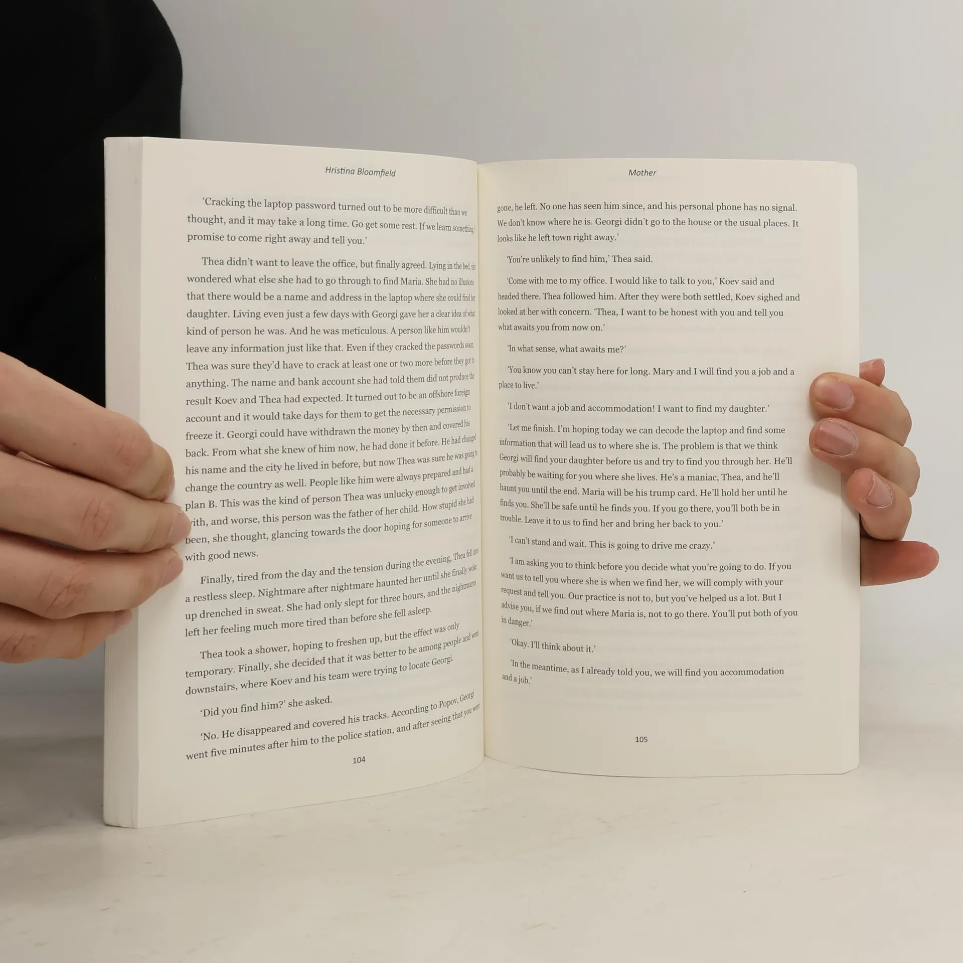 I will get my daughter back. Thea is separated from her daughter in the first hours after her birth. Betrayed by her family and the father of her child, she does everything possible to find her. Thea’s desire to get her daughter back is so great that it surprises not only her family but also the police. An investigation reveals that her baby was one of many children sold over the years. The traces of the adoptive parents appear and disappear, and finding her daughter turns out to be more difficult than Thea and the investigative team expected. The power of a mother’s love is at the heart of this book.
