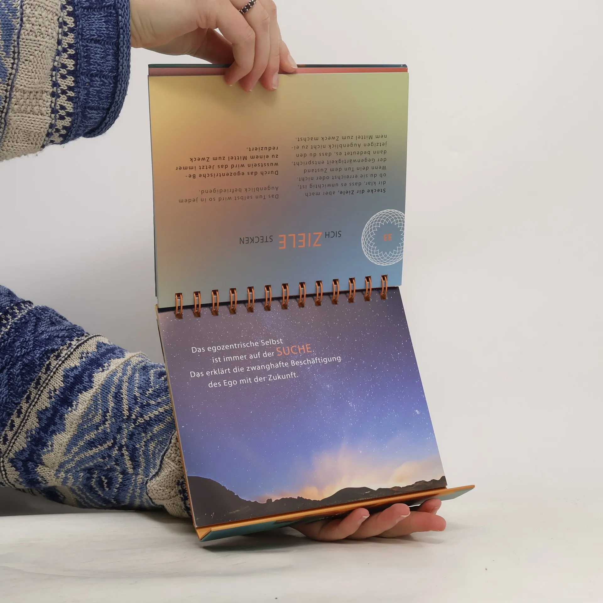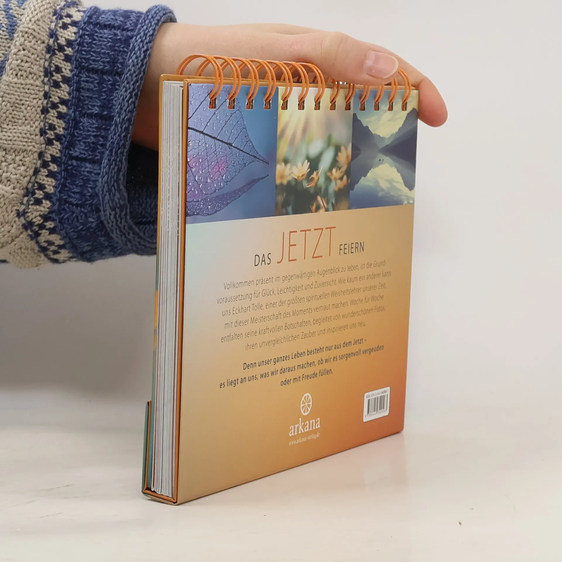 Das Jetzt feiern! Der erste Tischaufsteller von Eckhart Tolle – wunderschön und stimmungsvoll bebildert. Woche für Woche tauchen wir ein in seine kraftvollsten und inspirierendsten Botschaften, die unsere Wahrnehmung schärfen, eine neue innere Ausrichtung ermöglichen und den Blick aufs Wesentliche lenken: den gegenwärtigen Augenblick. Dieses Hier und Jetzt gilt es, wertzuschätzen, in seiner Vergänglichkeit anzuerkennen und es nicht mit Sorgen zu befrachten. Denn das Leben ist eine Aneinanderreihung eben jener Momente – es liegt an uns, was wir aus ihnen machen, ob wir sie mit Missmut vergeuden oder mit Freude füllen.