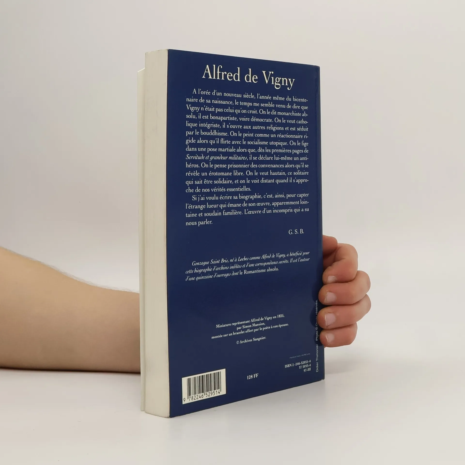 En 1997 sera célébré le bicentenaire de la naissance d'Alfred de Vigny, le plus méconnu, le plus énigmatique des grands poètes romantiques. La vie de ce poète fut un véritable roman dans lequel on trouve beaucoup de femmes - Vigny fut en effet un homme passionné par l'amour et l'érotisme - beaucoup de politique - il fut mêlé aux grandes affaires de son temps - et une vision "héroïque" du monde. C'est ce double aspect - l'érotomanie et la politique - que Gonzague Saint Bris a choisi de privilégier dans cette biographie qui utilise, pour la première fois dans un ouvrage non universitaire, le "journal intime" que Vigny rédigea dans les dernières années de sa vie. Marie Dorval et Hugo, Lamartine et Mignet, Musset et George Sand traversent ce livre qui ressuscite un homme touchant, public et solitaire.