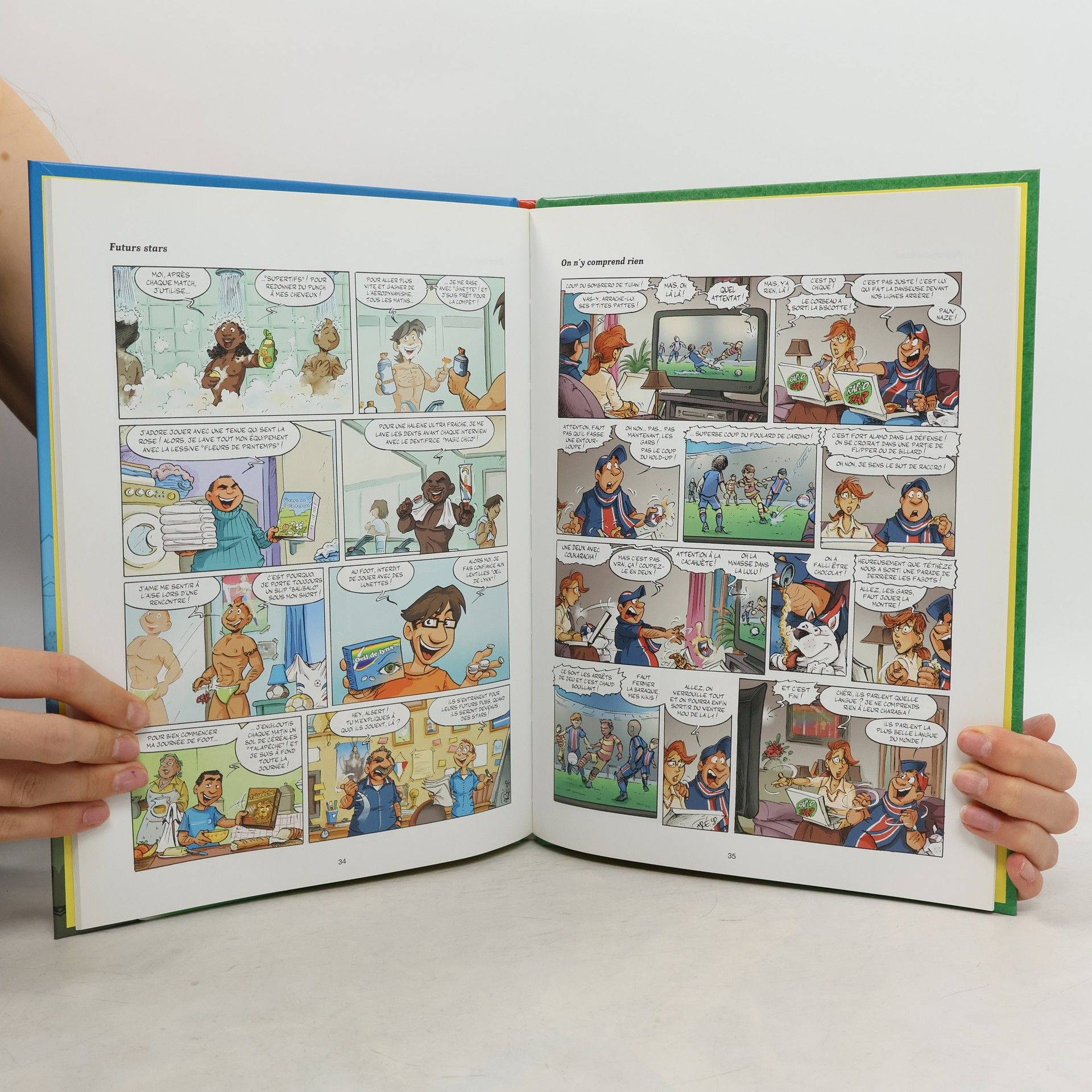 L'Académie du ballon rond ouvre ses portes ! Que le meilleur gagne ! Le centre de formation Jean-Marc Desbuts n'accueille que la crème du ballon rond. Celle qui parle foot, pense foot, vit foot, et n'apprécie que les ambiances de pelouse et de vestiaires. Sauf que dans une équipe il n'y a que onze places ! Et que les footeux en herbe sont nombreux? Alors il va bien falloir les départager ! Inutile de dire que la compétition sera rude, et qu'entre coups de théâtre et coups de crampons, tout sera permis ! Ciselé depuis le banc de touche par Aré, admirable connaisseur du petit monde du ballon rond, Foot goal c'est 46 pages format 2 fois 45 minutes pour une série de gags épatants, coachés par un dessin rond comme un ballon et aussi percutant qu'un pénalty à bout portant !