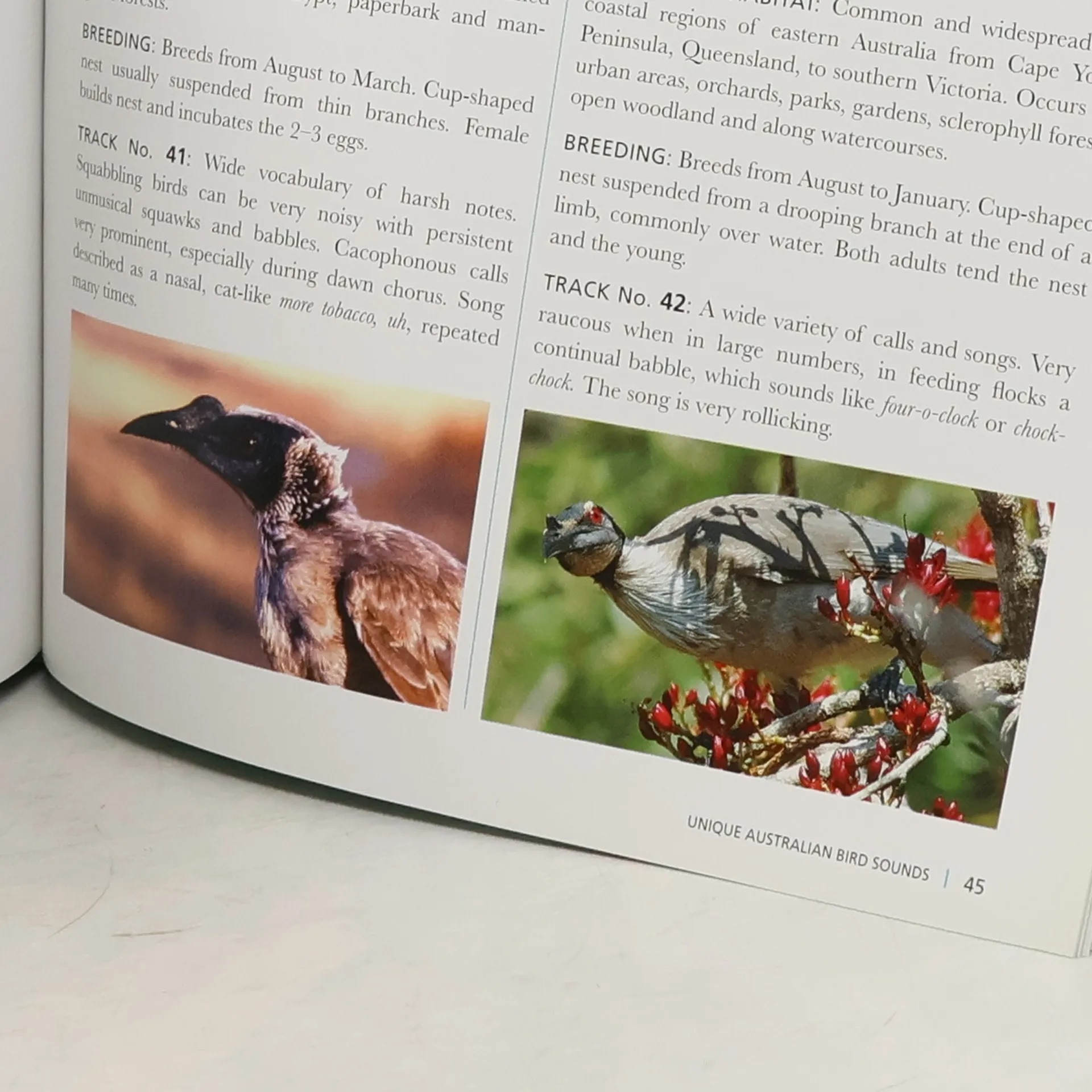 New Release February 2017 The birds found in Australia's bush, deserts and coastal regions, and even in its urban areas, provide an endless source of interest and entertainment, from noisy honeyeaters squabbling over wattle flowers to tiny pardalotes flitting high in the treetops. This very useful book and audio CD combination will be an essential addition to the bookshelves of birdwatchers of all levels. It helps the reader to identify a wide selection of species by sight and sound, with the focus being on those which are uniquely Australian. A little knowledge of songs and calls goes a long way to identifying the large number of birds that are heard but not seen. In the book each of the 70 species covered has a photo, along with descriptions of key ID features, habitat, distribution and the songs and calls which can be heard on the corresponding CD audio track. The CD incorporates hundreds of recordings of birds from all over the country, which have been accumulated over many decades