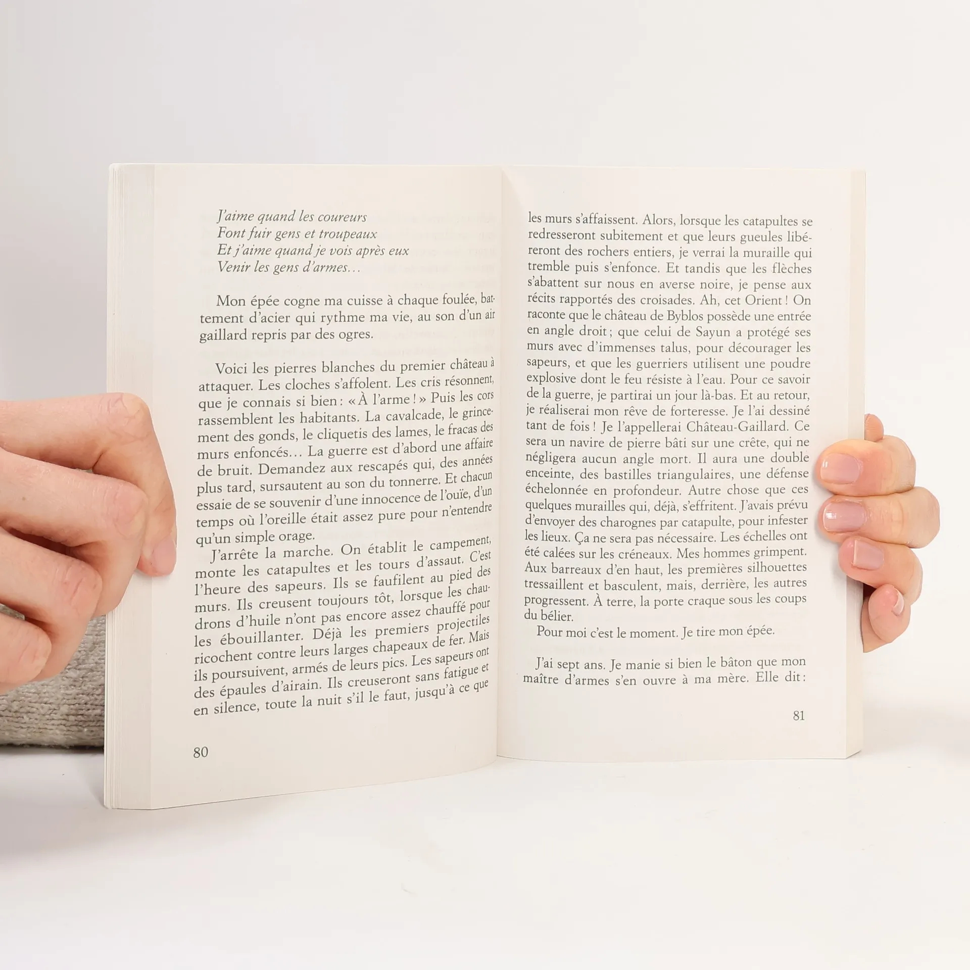 « Sa robe caresse le sol. À cet instant, nous sommes comme les pierres des voûtes, immobiles et sans souffle. Mais ce qui raidit mes frères, ce n’est pas l’indifférence, car ils sont habitués à ne pas être regardés ; ni non plus la solennité de l’entretien – tout ce qui touche à Aliénor est solennel. Non, ce qui nous fige, à cet instant-là, c’est sa voix. Car c’est d’une voix douce, pleine de menaces, que ma mère ordonne d’aller renverser notre père. » Aliénor d’Aquitaine racontée par son fils Richard Coeur de Lion.