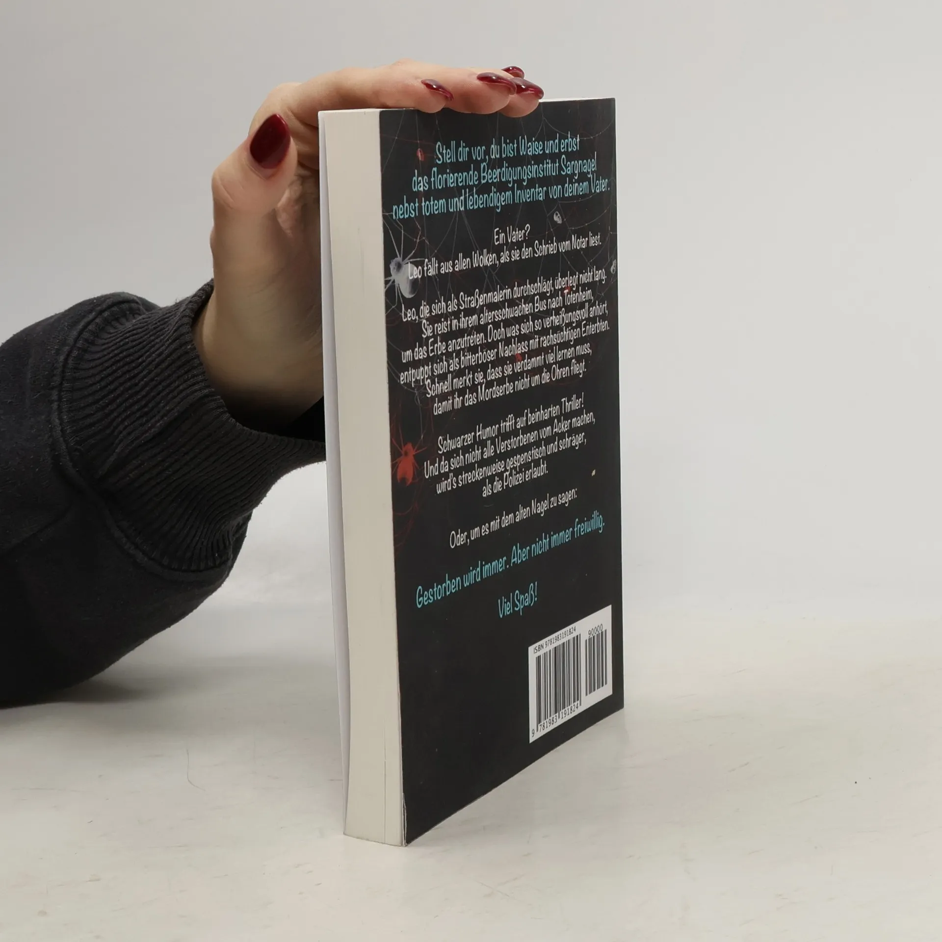 Stell dir vor, du bist Waise und erbst das florierende Beerdigungsinstitut Sargnagel nebst totem und lebendigem Inventar von deinem Vater. Ein Vater? Leo fällt aus allen Wolken, als sie den Schrieb vom Notar liest. Leo, die sich als Straßenmalerin durchschlägt, überlegt nicht lang. Sie reist in ihrem altersschwachen Bus nach Totenheim, um das Erbe anzutreten. Doch was sich so verheißungsvoll anhört, entpuppt sich als bitterböser Nachlass mit rachsüchtigen Enterbten. Schnell merkt sie, dass sie verdammt viel lernen muss, damit ihr das Mordserbe nicht um die Ohren fliegt. Schwarzer Humor trifft auf beinharten Thriller. Und da sich nicht alle Verstorbenen vom Acker machen, wird's streckenweise gespenstisch und schräger, als die Polizei erlaubt. Oder, um es mit dem alten Nagel zu sagen: Gestorben wird immer. Aber nicht immer freiwillig. Viel Spaß!