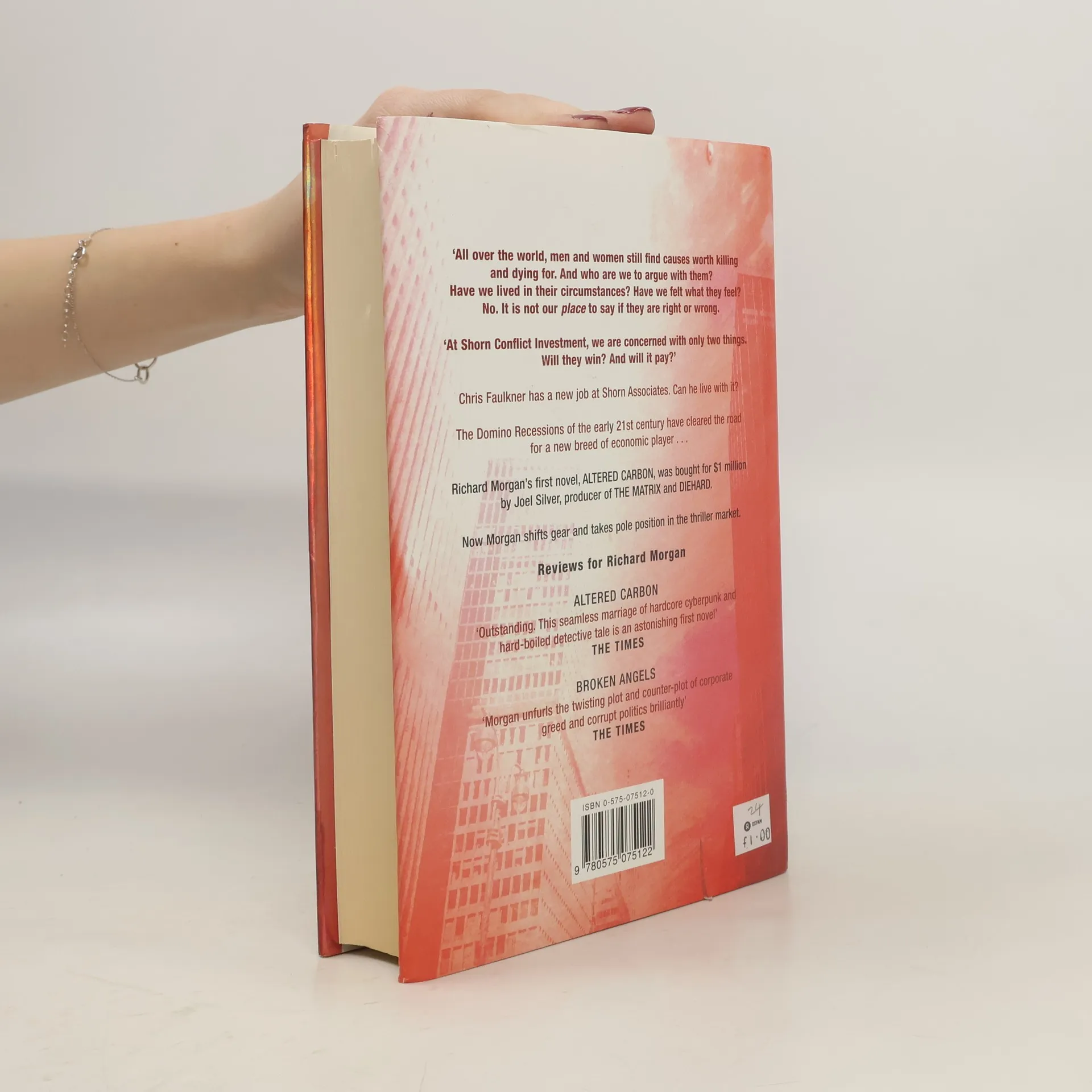A coup in Cambodia. Guns to Guatemala. For the men and women of Shorn Associates, opportunity is calling. In the superheated global village of the near future, big money is made by finding the right little war and supporting one side against the other–in exchange for a share of the spoils. To succeed, Shorn uses a new kind of corporate gladiator: sharp-suited, hard-driving gunslingers who operate armored vehicles and follow a Samurai code. And Chris Faulkner is just the man for the job. He fought his way out of London’s zone of destitution. And his kills are making him famous. But unlike his best friend and competitor at Shorn, Faulkner has a side that outsiders cannot see: the side his wife is trying to salvage, that another woman–a porn star turned TV news reporter–is trying to exploit. Steeped in blood, eyed by common criminals looking for a shot at fame, Faulkner is living on borrowed time. Until he’s given one last shot at getting out alive. . . .