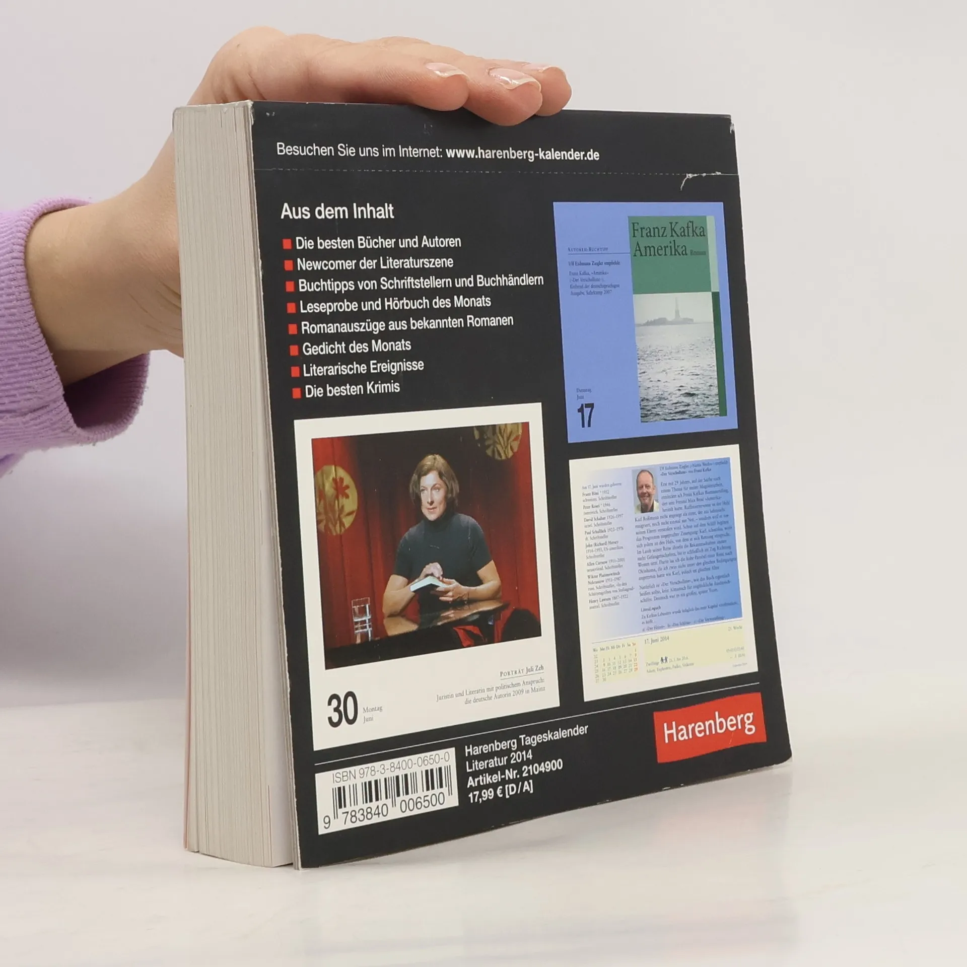 Die Harenberg Bild-Tageskalender zeigen mehr als nur das Datum: An allen Tagen des Jahres exzellente Fotos auf den Vorderseiten und dazu informative Texte auf den Rückseiten - so lautet das bewährte Erfolgskonzept. Der Harenberg Bild-Tageskalender "Literatur" öffnet die Tür ins Reich der Bücher: Autorenporträts, Buch-Umschläge und -Illustrationen, Dokumente und Szenenfotos zeigen, wer oder was Rang und Namen in der Literatur hat.§Auf den Vorderseiten: täglich faszinierende Bilder; klares Kalendarium; kurze Bilderklärungen. Auf den Rückseiten: Hintergrundinformationen zum Bild des Tages; Sternzeichen und Namenspatrone; Auf- und Untergangszeiten von Sonne und Mond. Der Serviceteil im Anhang: Register mit allen Einzelthemen des jeweiligen Kalenders; Übersichten; Schulferien für Deutschland und Österreich.§
