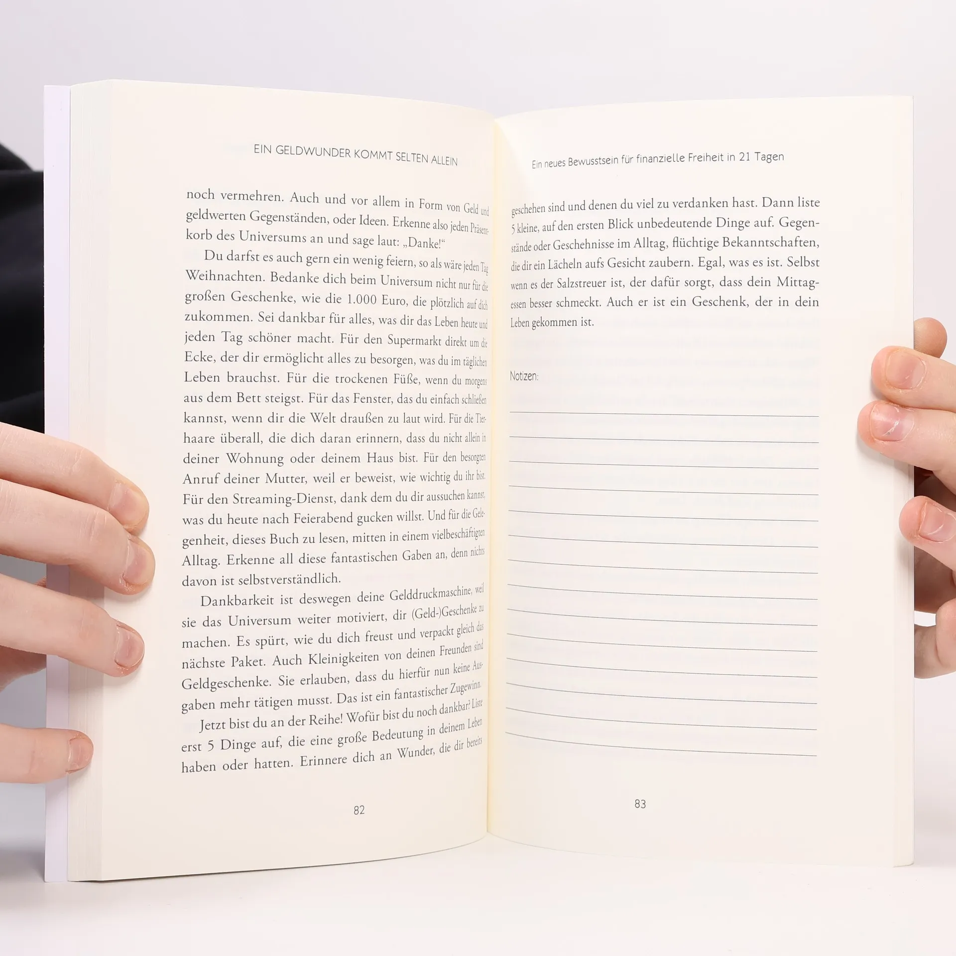 Die Bestsellerautorin von "Das Universum liefert immer zweimal" präsentiert ein Arbeitsbuch zur Manifestation einer neuen finanziellen Realität. Es hilft dir, Ängste und einschränkende Überzeugungen zu identifizieren, die deinem finanziellen Erfolg im Weg stehen. Du lernst magische Techniken, um Glaubenssätze kinderleicht umprogrammieren oder löschen zu können. Schritt für Schritt entwickelst du ein neues Money Mindset, das dir ermöglicht, mehr Geld und Erfolg zu manifestieren. Geld verdienen soll leicht und freudvoll sein und im Flow zu dir kommen. Finanzieller Erfolg ist das Ergebnis eines transformierenden Prozesses, kein Zufall. Das Buch enthält eine 21-tägige Wunder-Challenge, um bis zum Ende der 21 Tage Geldwunder in dein Leben zu ziehen. Es ist ideal, wenn du Blockaden in Bezug auf Geld und Finanzen lösen möchtest. Deine Gedanken über Geld bestimmen deinen Erfolg und dein erlaubtes Einkommenslevel. Ein neues Mindset erfordert aktive Mitarbeit; das Buch ist nicht nur zum Lesen gedacht. Deine Beziehung zu Geld verdient die gleiche Liebe und Aufmerksamkeit wie ein romantischer Partner. Die Autorin begleitet dich mit Übungen durch den gesamten Prozess. Wenn die Geldenergie in deinem Leben frei fließen kann und du dich von kollektiven Glaubensmustern deiner Vorfahren befreist, kannst du dein volles Potenzial entfalten. Die Übungen im Buch helfen dir, neue Gedankenmuster über Geld und Reichtum zu entwickeln, die zu echten Erg