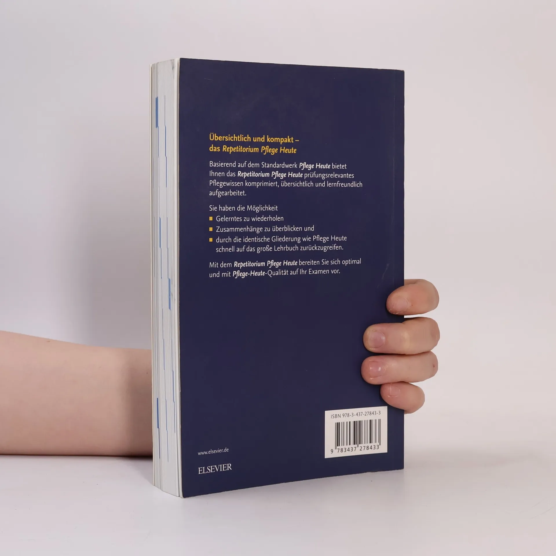 Macht jeden Schüler fit für die Prüfung! Passend zur 6. Auflage Pflege HeuteBasierend auf dem Standardwerk Pflege Heute bietet das Repetitorium das prüfungsrelevante Pflegewissen in Pflege Heute Qualität – komprimiert, übersichtlich strukturiert und lernfreundlich aufbereitet.Lernhilfen wie Merkekästen sowie das Farbleitsystem unterstützen bei der effektiven Prüfungsvorbereitung.