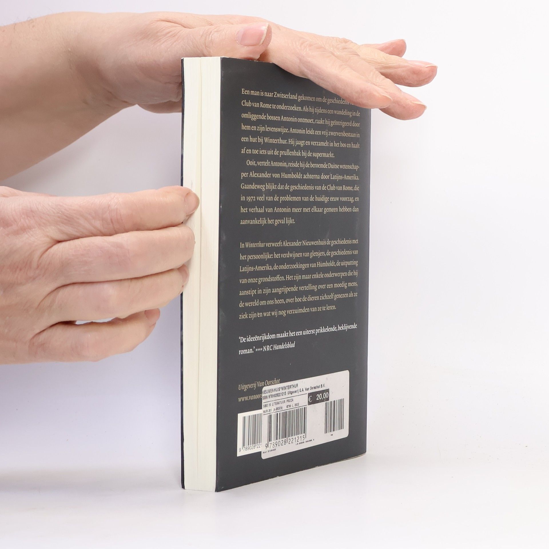 De verteller in 'Winterthur' ontmoet Isodor, die in een hut in het bos een vrij zwerversbestaan leidt. Hij jaagt en verzamelt in het bos en haalt af en toe iets uit de prullenbak bij de supermarkt. De verteller is in Winterthur om de geschiedenis van de Club van Rome, die in 1972 veel van de problemen van de huidige eeuw voorzag, te onderzoeken en raakt steeds meer door Isodor gefascineerd. Als Isodor begint te spreken over hoe hij ooit de beroemde Duitse wetenschapper Alexander von Humboldt achterna reisde naar Latijns-Amerika en daar allerlei wonderlijke ontmoetingen heeft gehad, blijkt dat het onderzoek naar de Club van Rome en de biografie van Isodor meer met elkaar gemeen hebben dan op het eerste gezicht leek.00Alexander Nieuwenhuis (1984) is journalist, essayist en wildernisgids. Hij studeerde aan het Koninklijk Conservatorium Antwerpen. In 2014 begon hij de Intuïtieve Encyclopedie en hij publiceerde in de 'Nederlandse Boekengids' over Menno ter Braak en de Club van Rome.0'Winterthur' is zijn romandebuut.