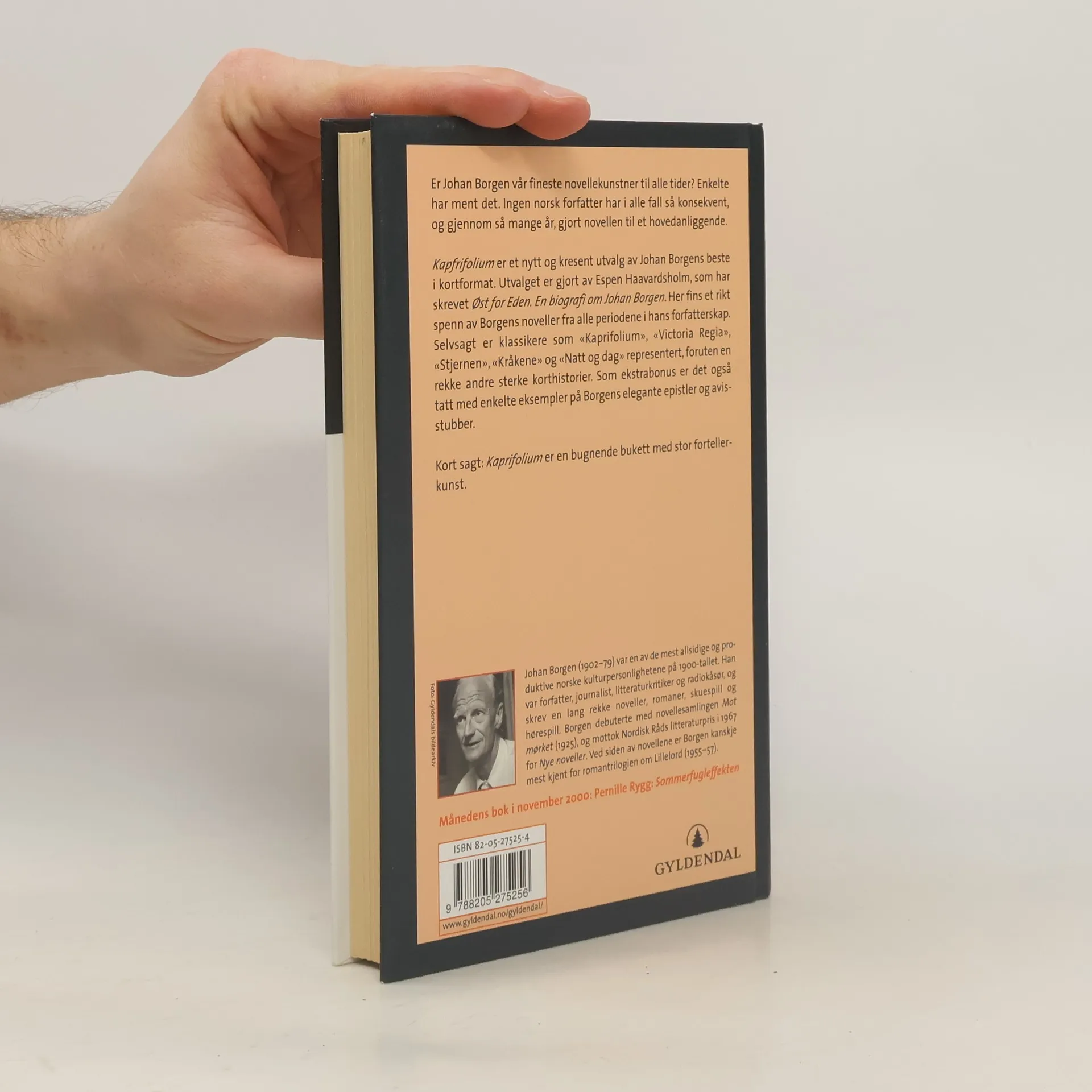Er Johan Borgen en av våre fineste novellekunstner til alle tider? Enkelte har ment det. Ingen norsk forfatter har i alle fall så konsekvent, og gjennom så mange år, gjort novellen til et hovedanliggende. Kapfrifolium er et nytt og kresent utvalg av Johan Borgens beste i kortformat. Utvalget er gjort av Espen Haavardsholm, som har skrevet Øst for Eden. En biografi om Johan Borgen. Her fins et rikt spenn av Borgens noveller fra alle periodene i hans forfatterskap. Selvsagt er klassikere som f.eks. «Kaprifolium», «Victoria Regia», «Stjernen», «Kråkene» og «Natt og dag I» representert, foruten en rekke andre sterke korthistorier. Som ekstrabonus er det også tatt med enkelte eksempler på Borgens elegante epistler og avisinnlegg. Kort sagt: Kaprifolium er en bugnende bukett med stor fortellerkunst.