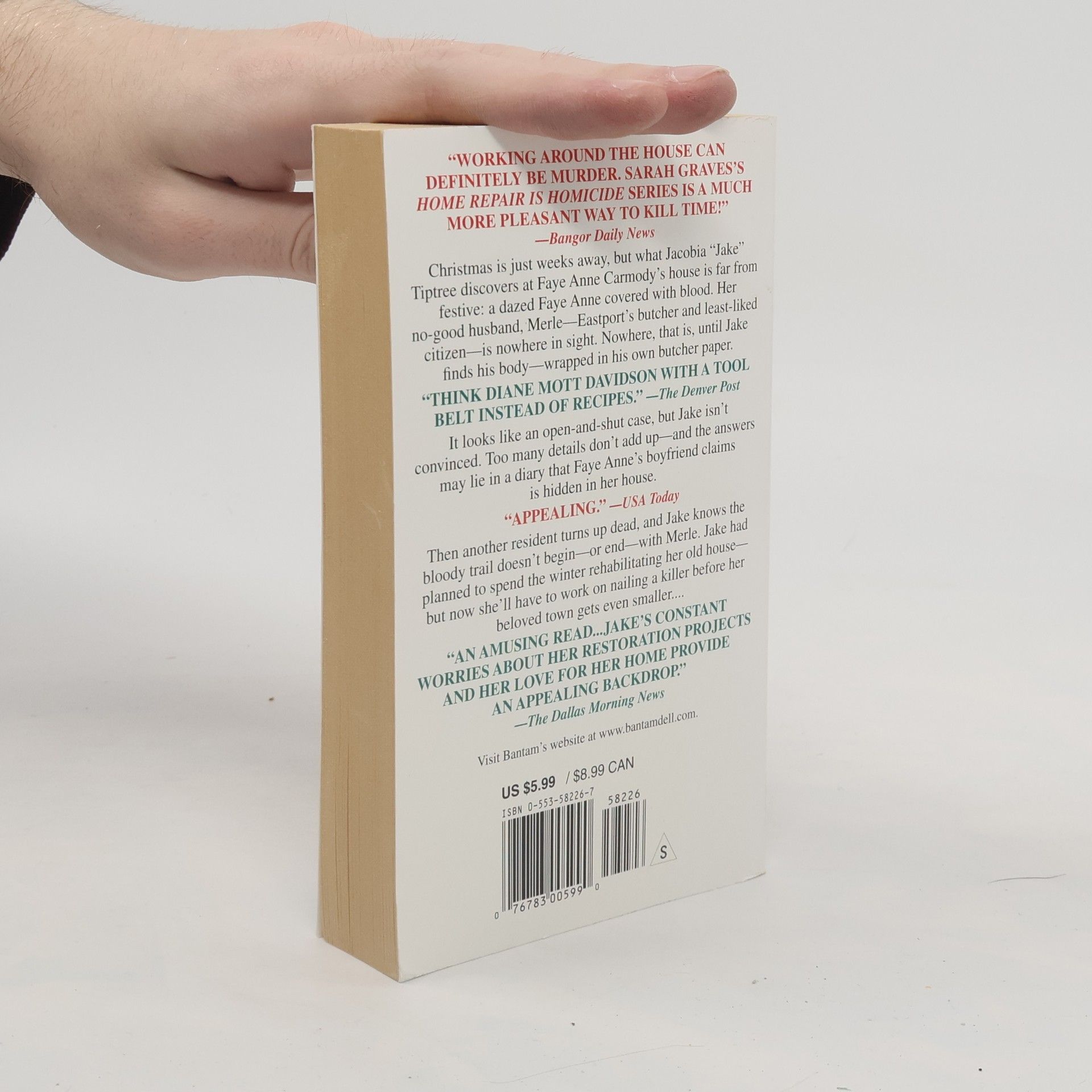 When Jacobia "Jake" Tiptree plans a visit to Faye Anne Carmody's house, she doesn't expect to find it covered in blood. She also doesn't expect to find Faye Anne dazed, yet alive. But she is. All looks fine, until Jake takes a trip to the butcher's shop, and finds a bunch of meat packages wrapped in brown paper in the display case. Realizing that this is unusual, Jake investigates, only to find Faye Anne's husband's, Merle, body wrapped in those little packages. Then another person is found murdered, and Jake immediately decides that it's up to her to solve the crime, instead of spending time with her family and working on rehabilitating her home. Who can get anything done during the holidays, when there's a killer on the loose?