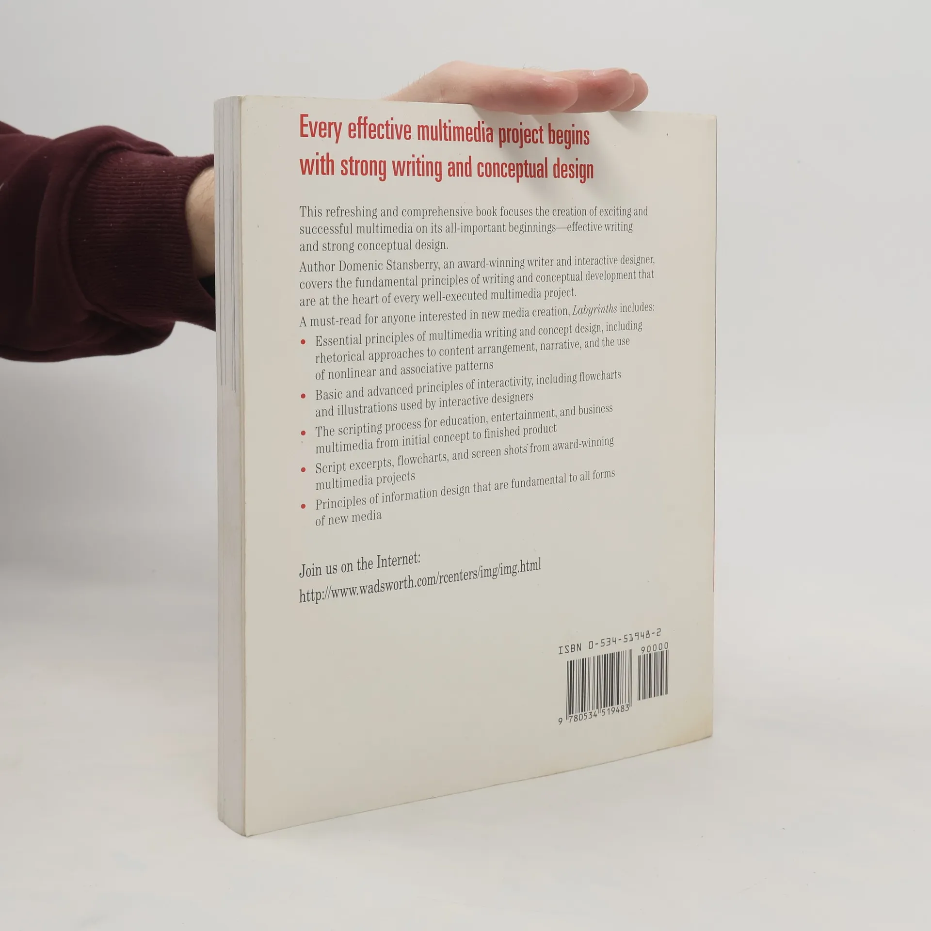 This book shows students how to write and design effective, interactive multimedia for CDs and Web sites. It discusses scripting and conceptual development. Its writing and charting techniques make it a practical guide for students, professional writers, producers, and others looking to create meaningful content.